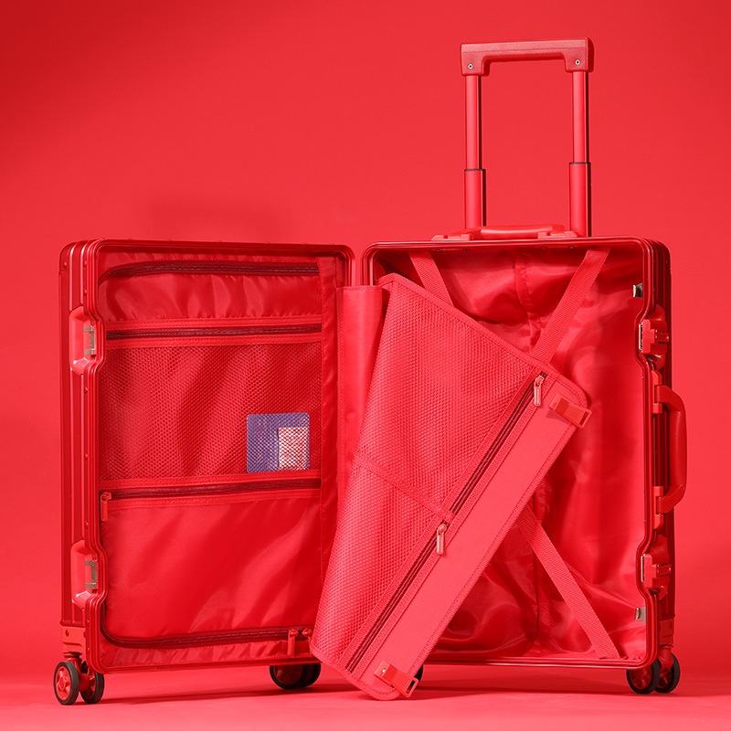 20-Inch Carry-On Luggage–24-Inch Travel Suitcase,Bright Red Aluminum Frame.