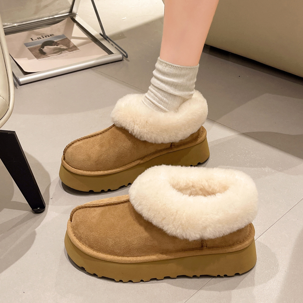 Large Size Snow Boots42 Thick Bottom Low Top Snow Boots Women Style Slip-on Fur Winter Large Size Cotton Shoes