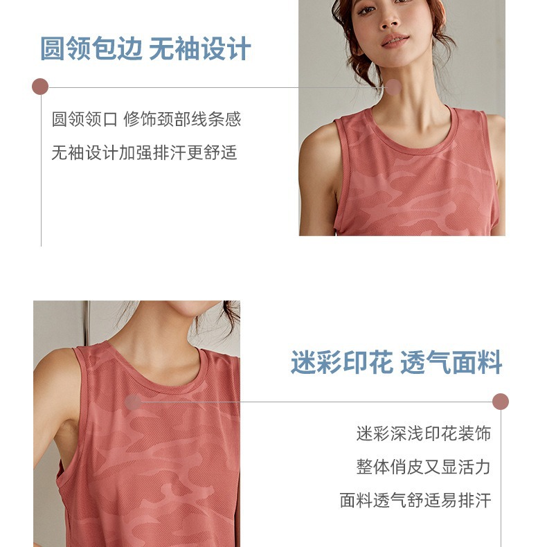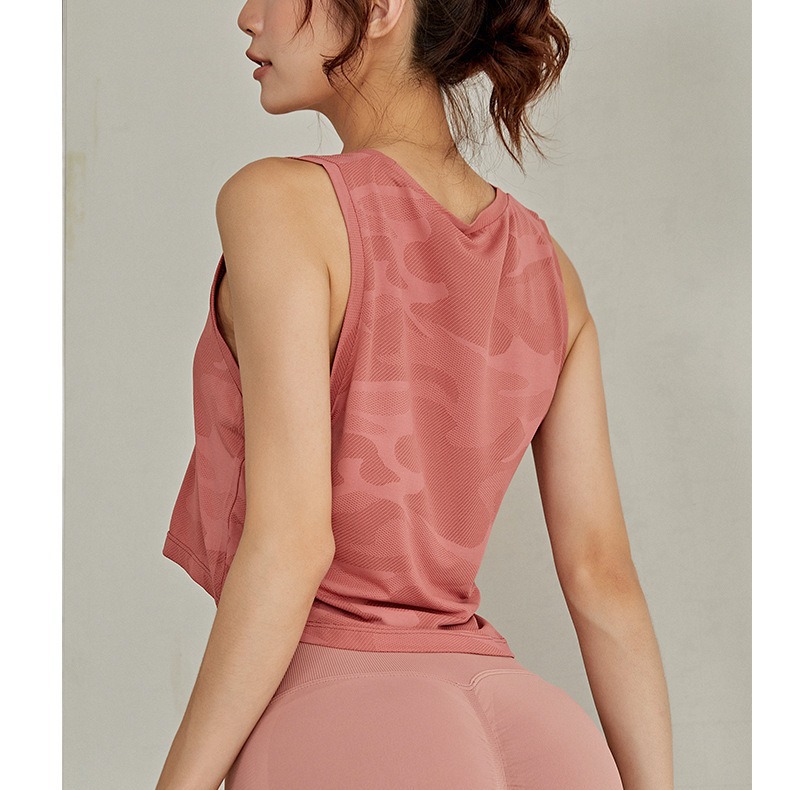 Lulu Sports Vest Women Camouflage Fitness T-shirt Loose Running Top Short Yoga Sleeveless Knitted Navel-exposed Summer