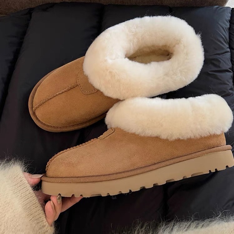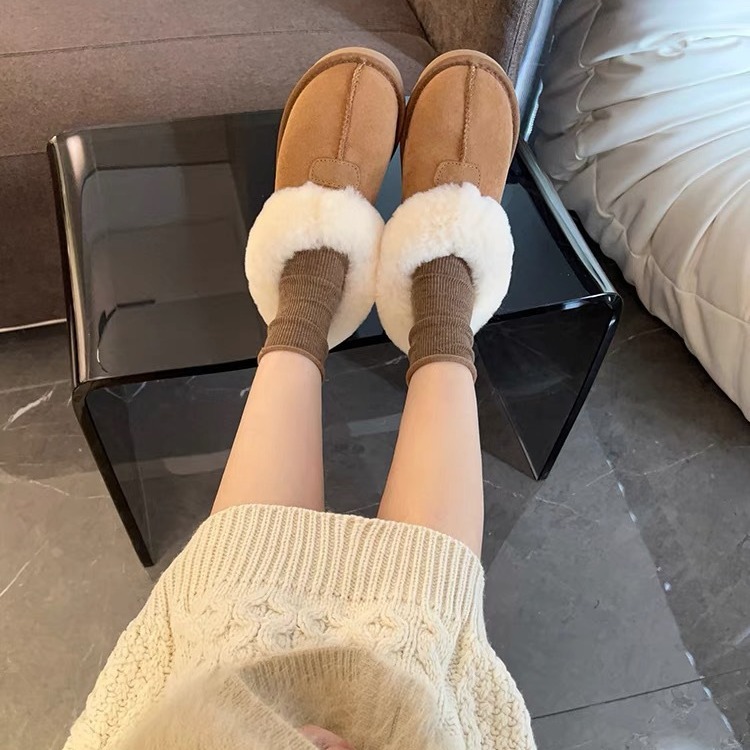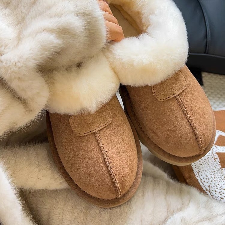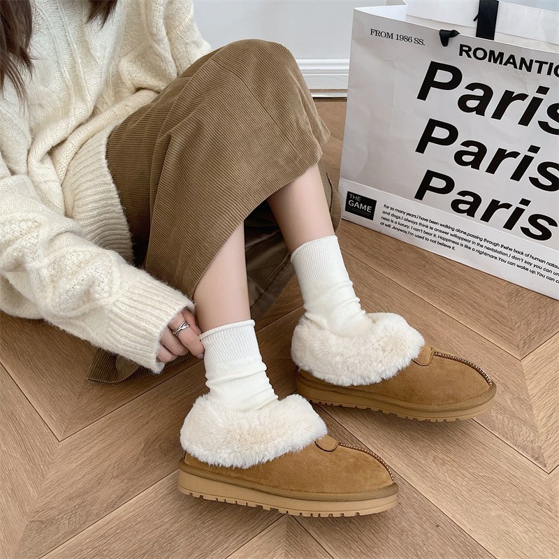 Flat-soled Low-top Snow Boots For Women Style Slip-on Fur Winter Cotton Shoes Plus Velvet Thickened Anti-slip Snow Boots