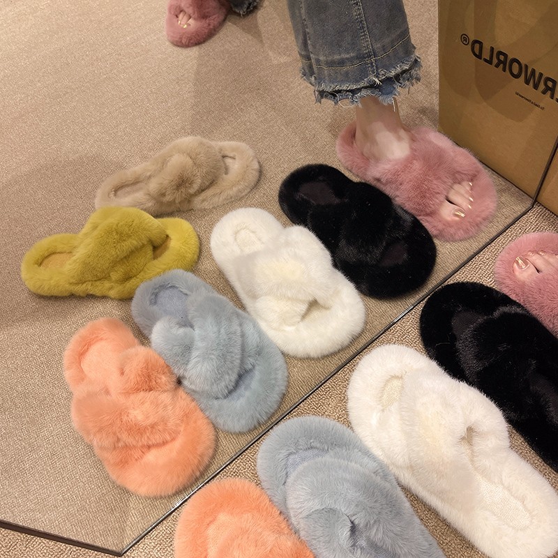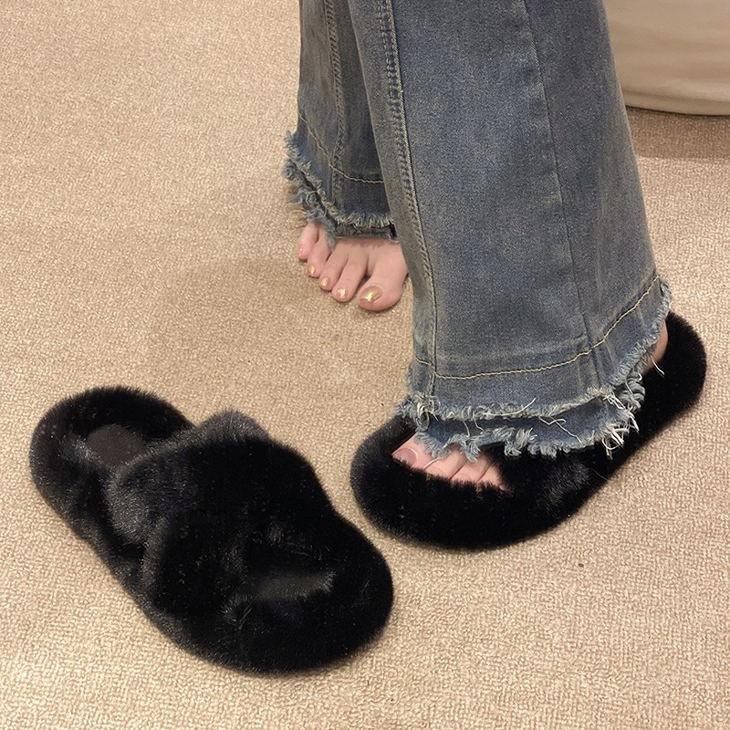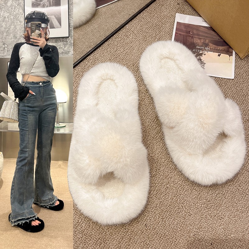 Large Size Slippers For Women41-42 Internet Celebrity Thick-soled Fur Slippers For Outdoor Wear Autumn And Winter Cross Fur Slippers For Women