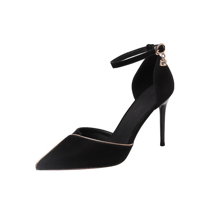 Imitation Leather Fashion Stiletto Korean Rubber One Size Black Buckle French Pointed European And American High Heels Sandals