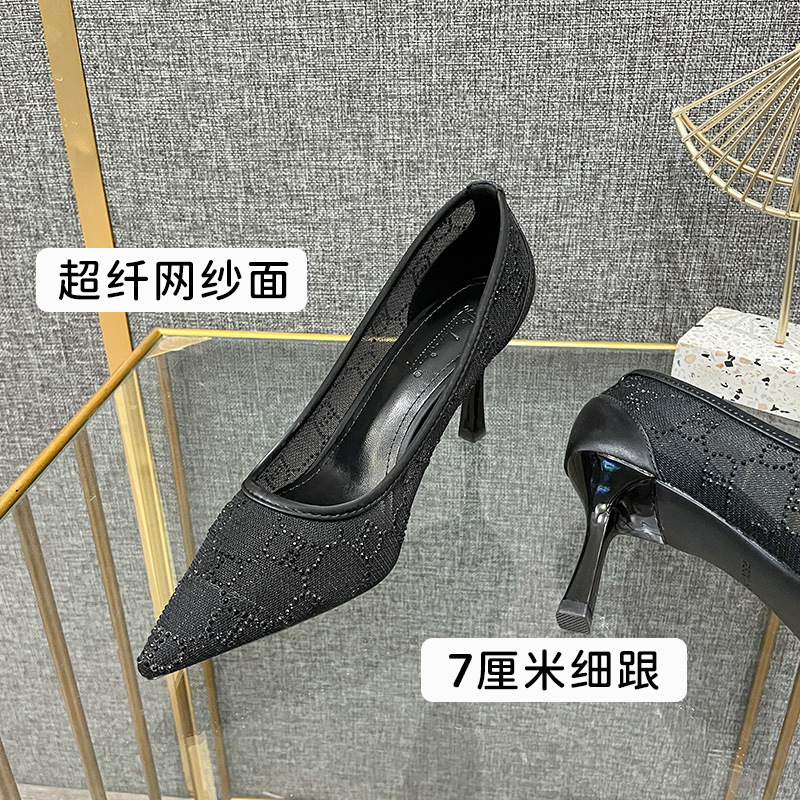 Casual Pointed Toe Women's Shoes High Heels Single Shoes Temperament Fashionable All-match Daily Shallow Mouth Microfiber Mesh Stiletto