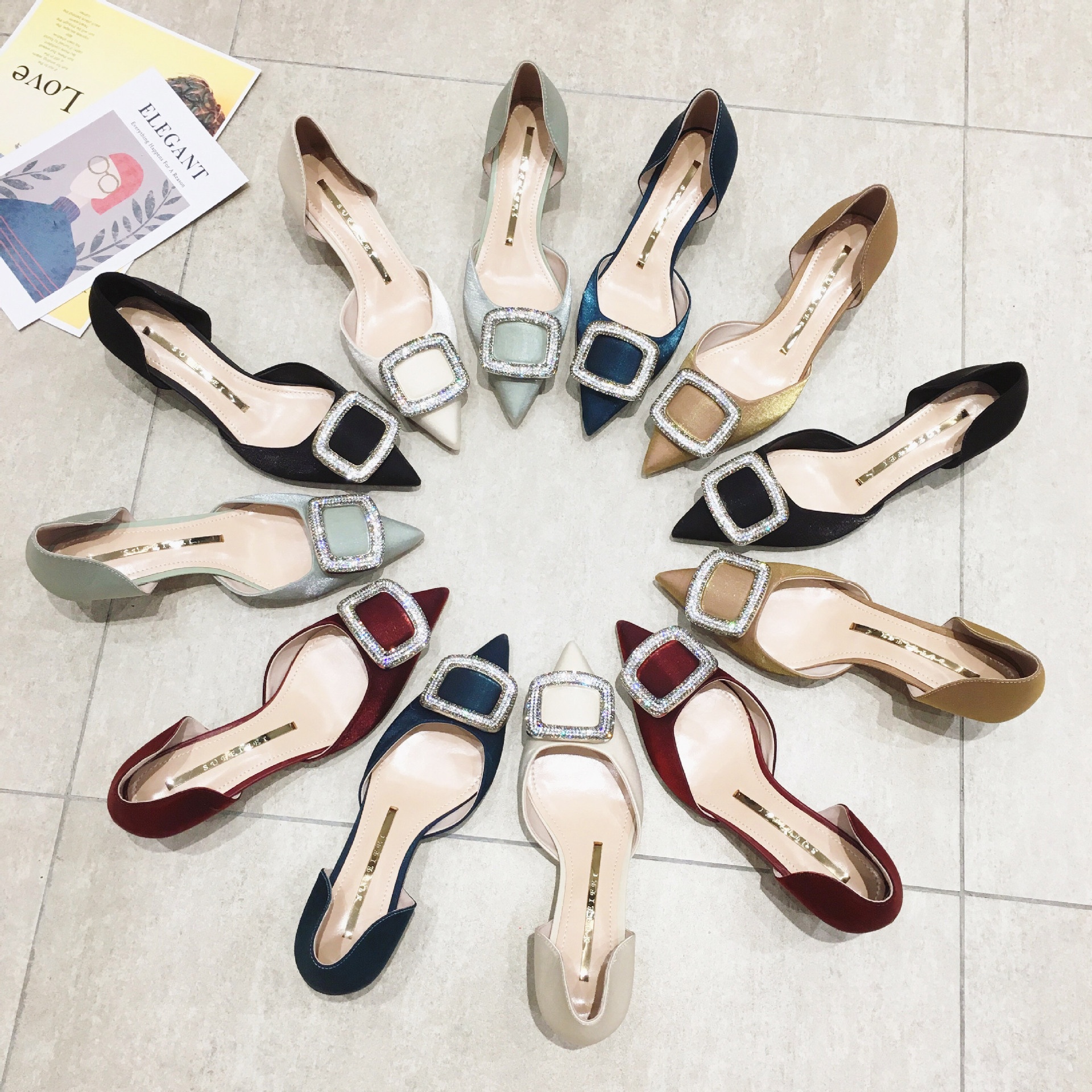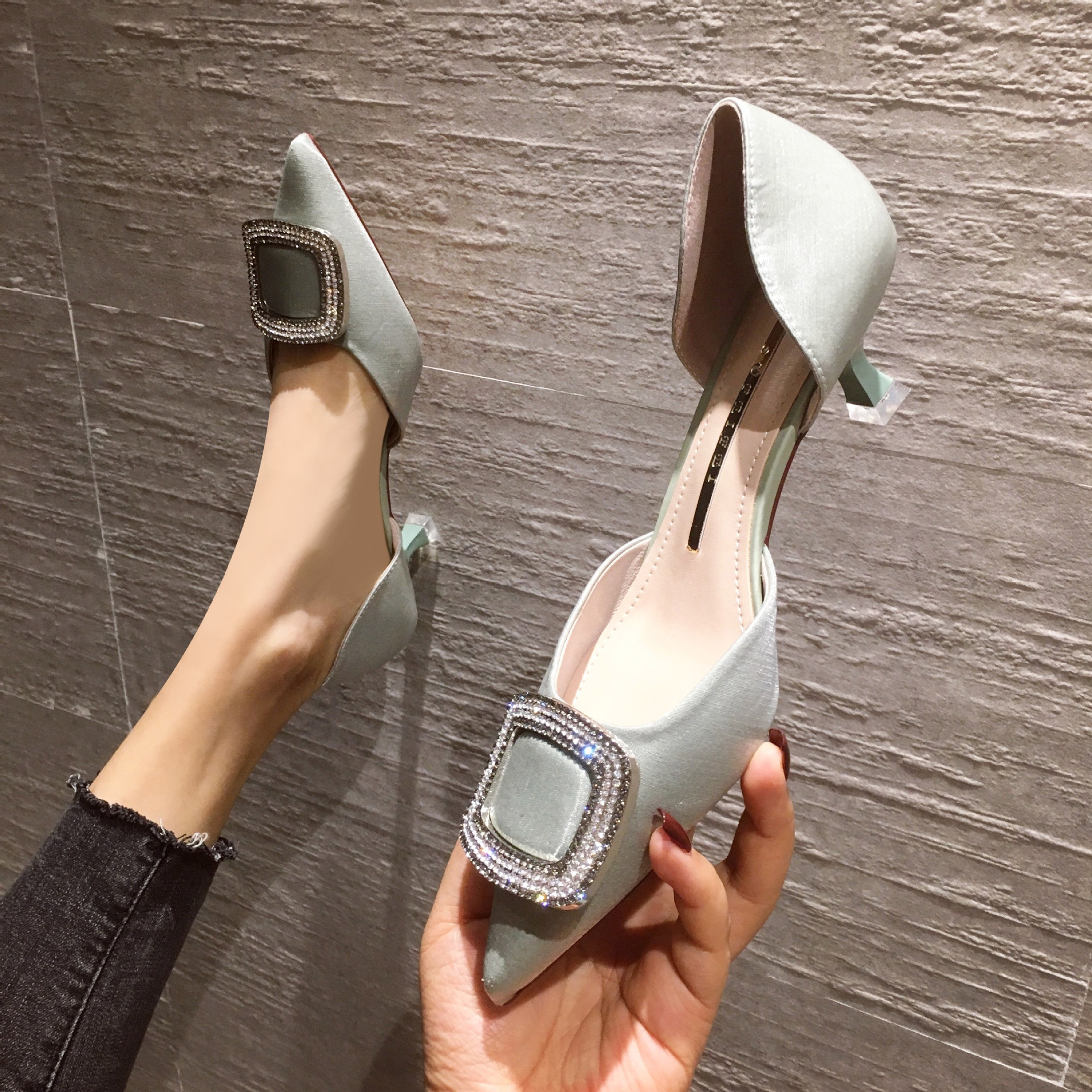 820-11 Korean Version Of The Popular Online Celebrity Work Women's High Heels Pointed Toe Non-slip Shallow Mouth Stiletto Girl Style Satin Shoes
