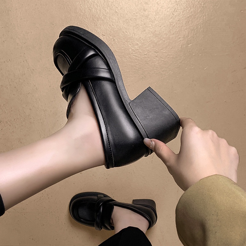 Black All-match British Style Casual Thick-soled Leather Shoes For Women Autumn And Winter French Retro Mary Jane Shoes