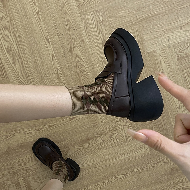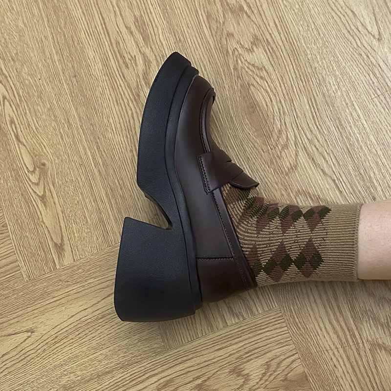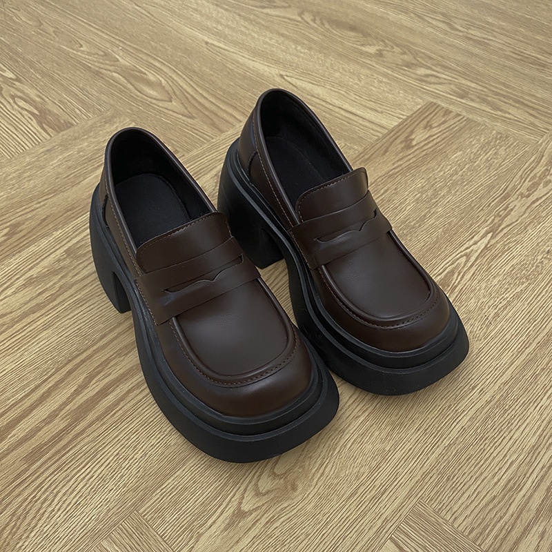 Thick-soled Height-enhancing French Brown Loafers For Women Autumn And Winter British All-match Forest-style Thick-heeled Small Leather Shoes