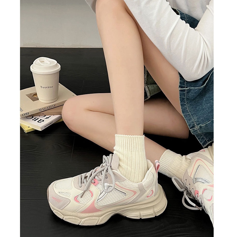 Queen Fan Hong Kong Style Thick-soled Dad Shoes For Women Summer High-end Mesh Versatile Lightweight Sports Shoes