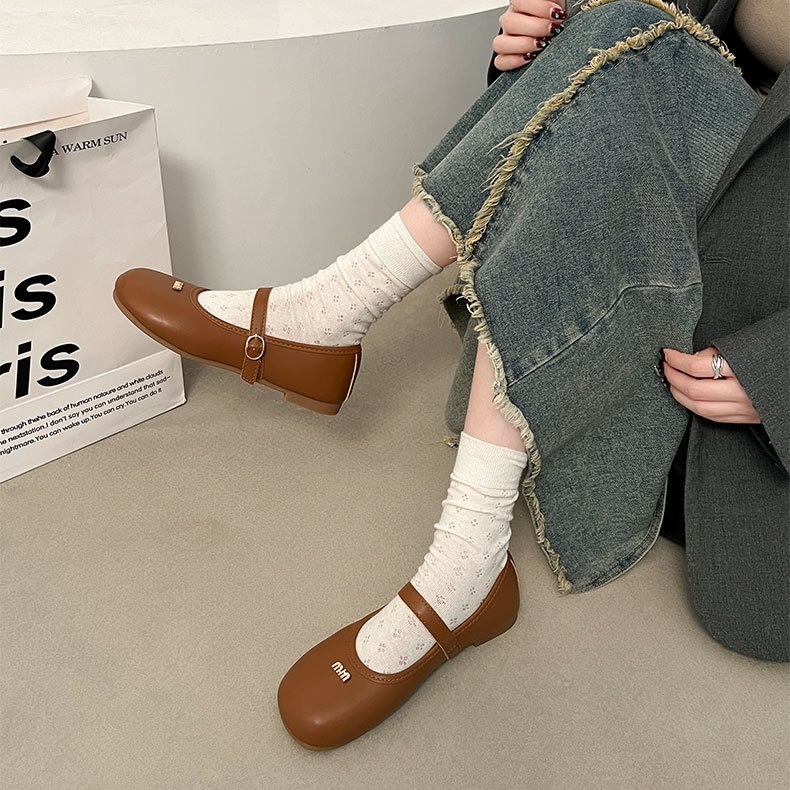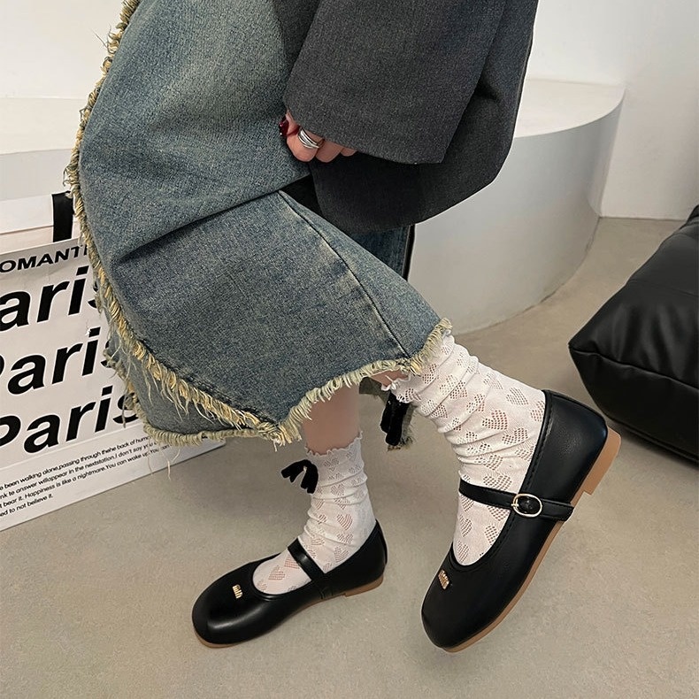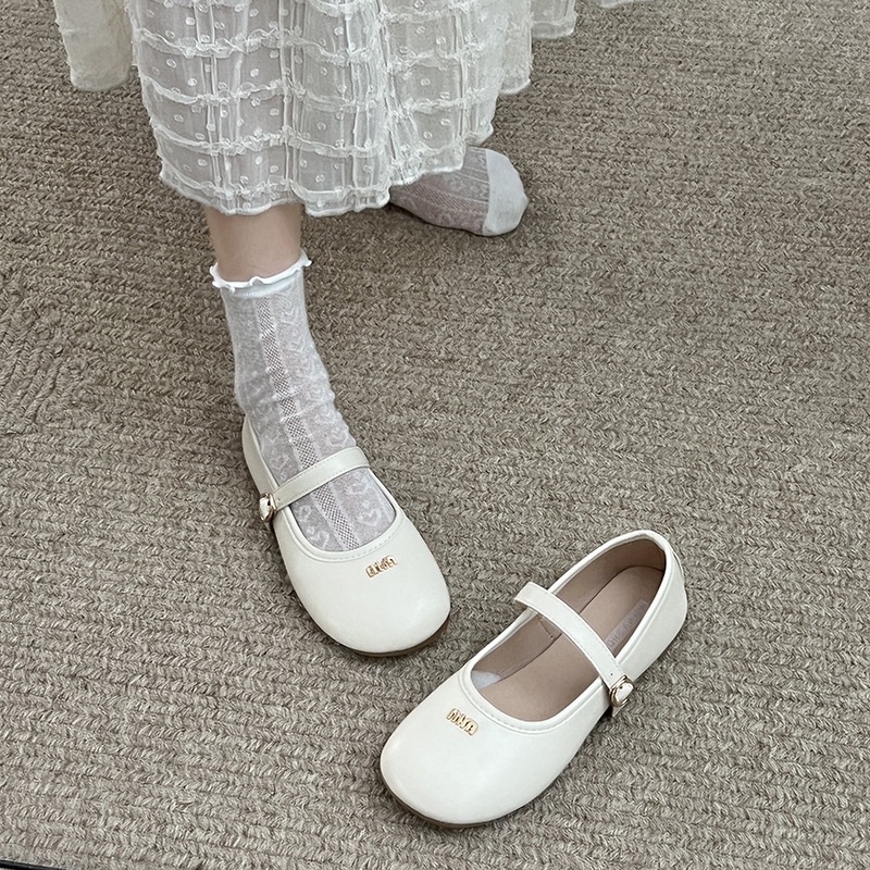 White Retro Flat French Mary Jane Shoes For Women Spring Versatile Soft Bottom Shallow Mouth With Skirt Single Shoes