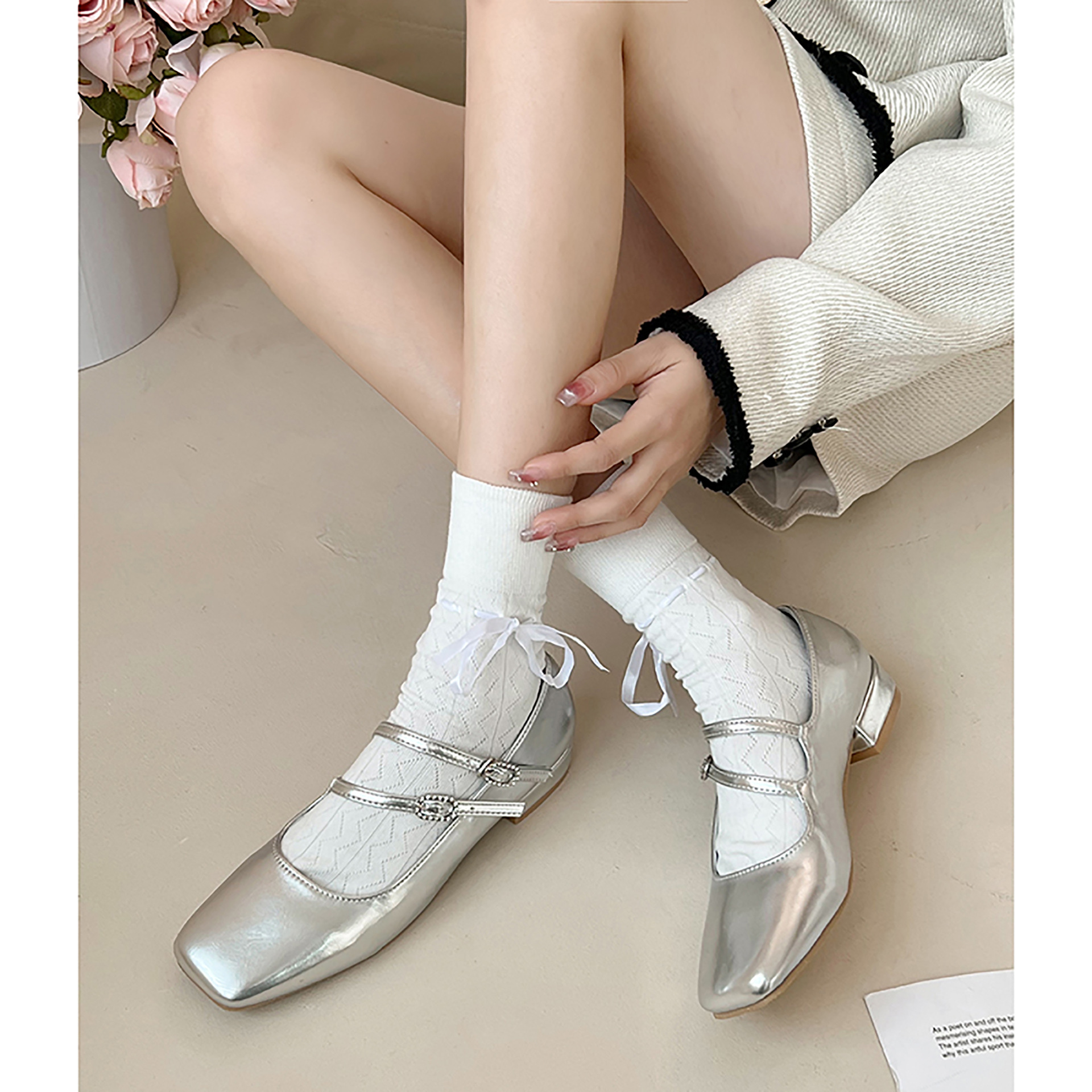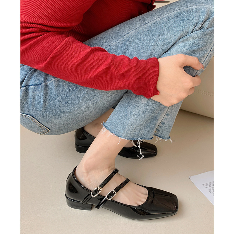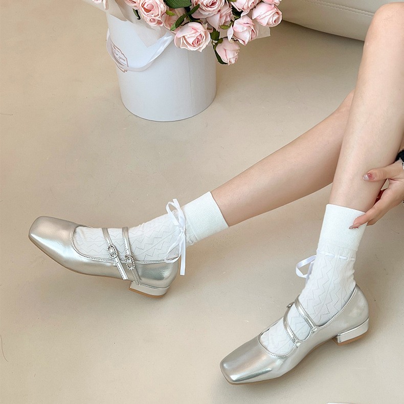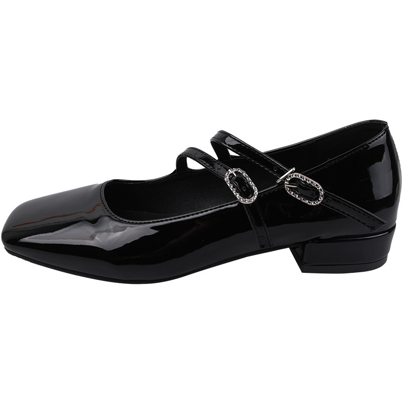 Black Square Toe Shallow Mouth With Skirt Ballet Shoes For Women Spring And Autumn French Retro Thick Heel Mary Jane Shoes