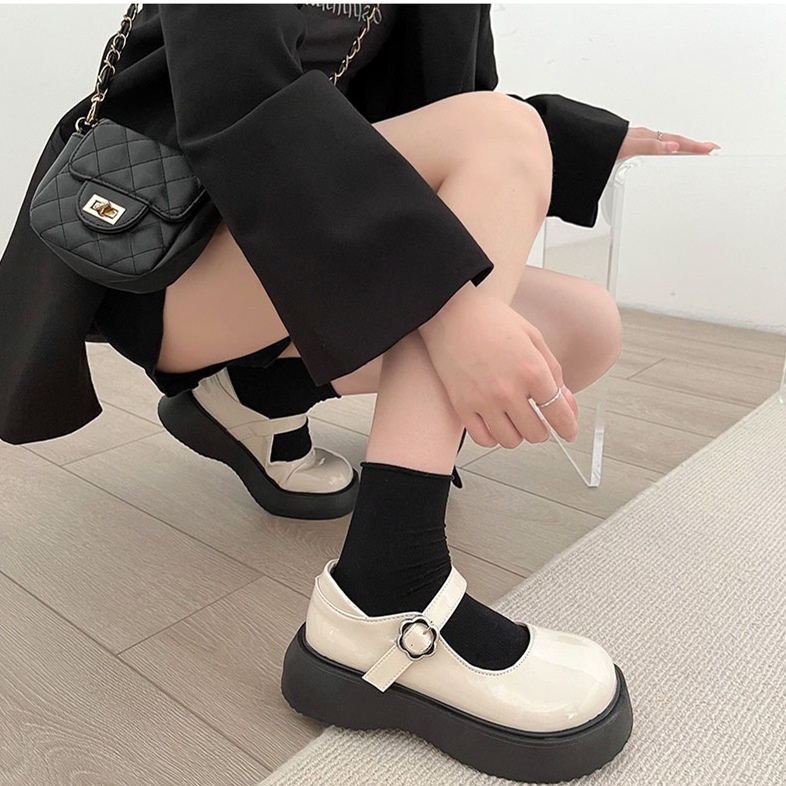 Thick-soled Versatile Leather Shoes For Women Summer Retro Mary Jane Shoes French Temperament Black Single Shoes