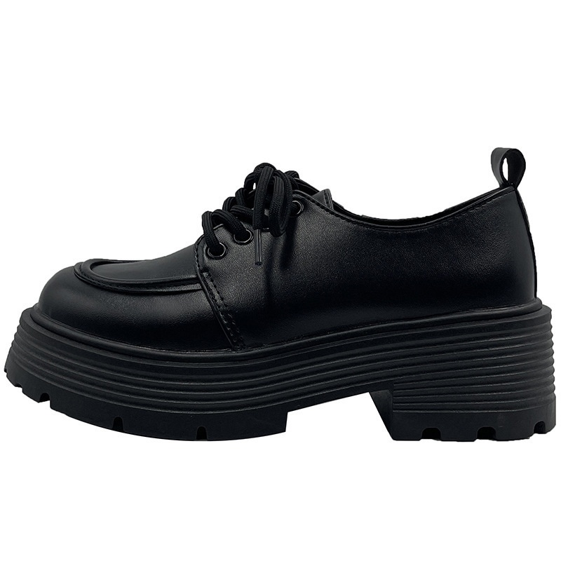 Japanese Style Black Leather Shoes For Women Autumn And Winter Retro British Style Thick Sole Heightening Versatile Lace-up JKSingle Shoes