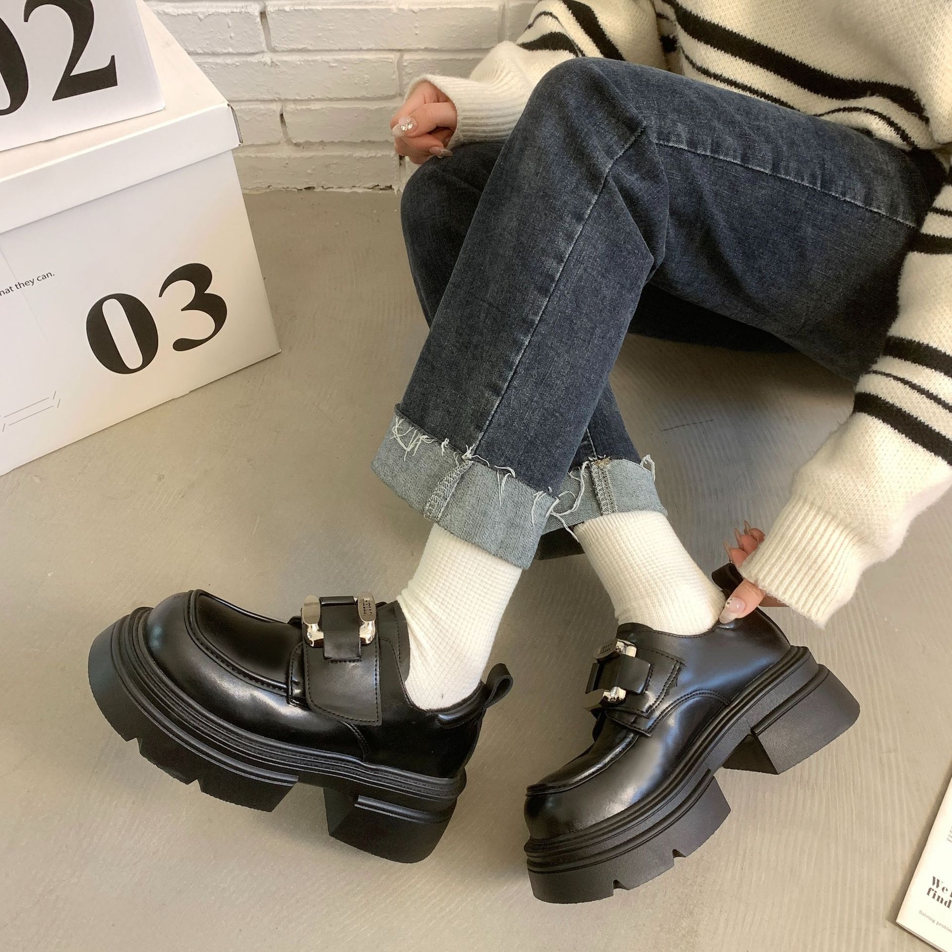 British Style Thick Heel Thick Sole Casual Mary Jane Leather Shoes For Women Spring And Autumn Shallow Mouth With Skirt Single Shoes