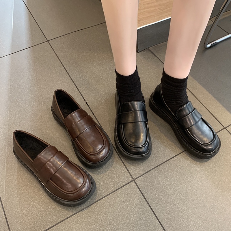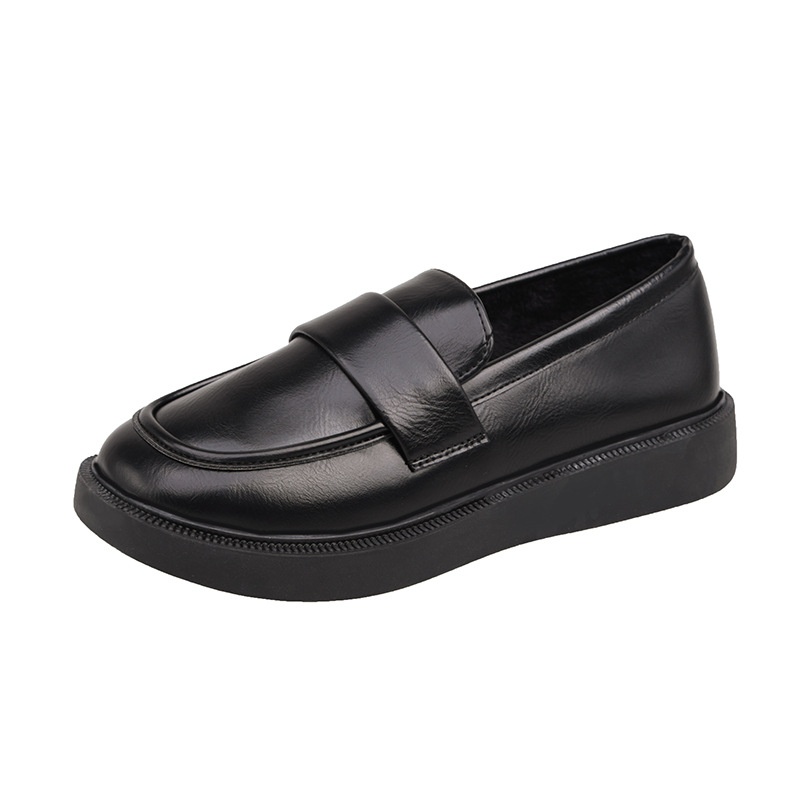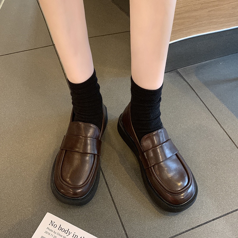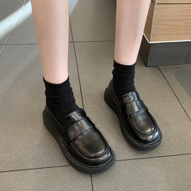 Retro British Style All-match Black Round Toe Thick-soled Leather Shoes For Women Summer Thick-heeled French Loafers