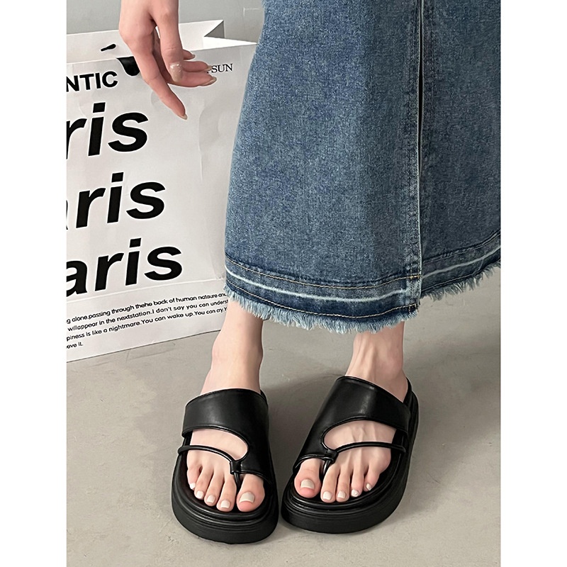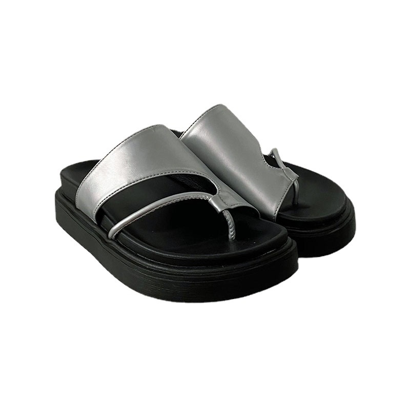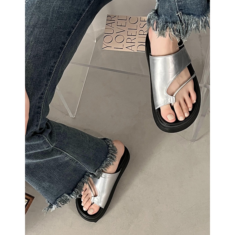 Silver Thick-soled Non-slip Flip-flops For Women For Summer Wear Style Internet Celebrity Niche Soft-soled Beach Sandals
