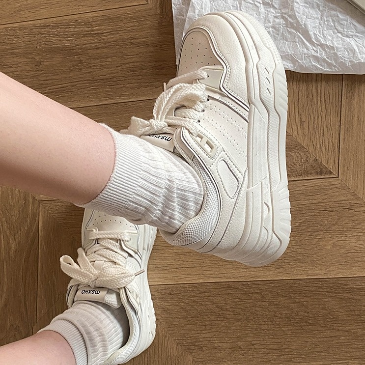 Platform Heel Student Retro All-match Height-enhancing Thick-soled White Shoes For Women Autumn And Winter Lightweight Sports Shoes