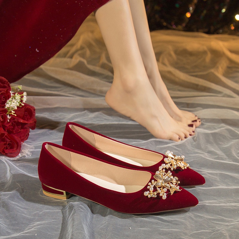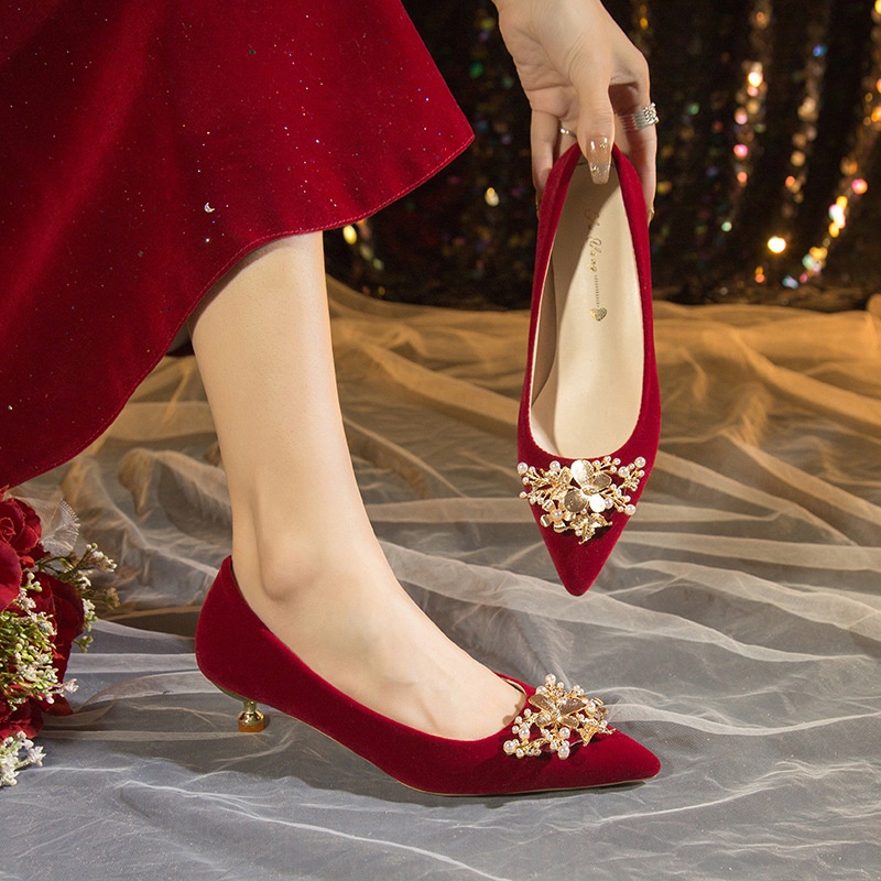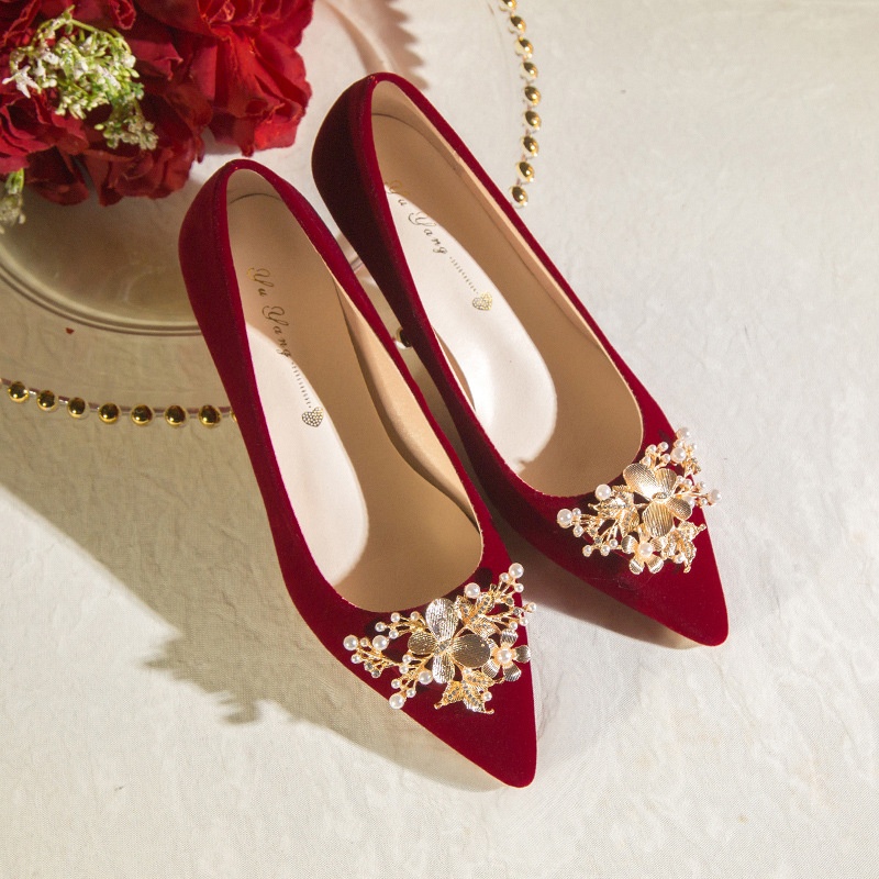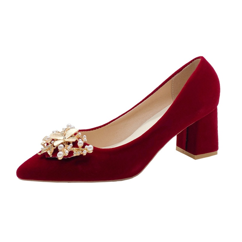 Korean Version Of Niche Thick-heeled Wedding Shoes,Bridal Shoes,Xiuhe Wedding Dress Style,No-tiring Chinese-style Wedding High Heels
