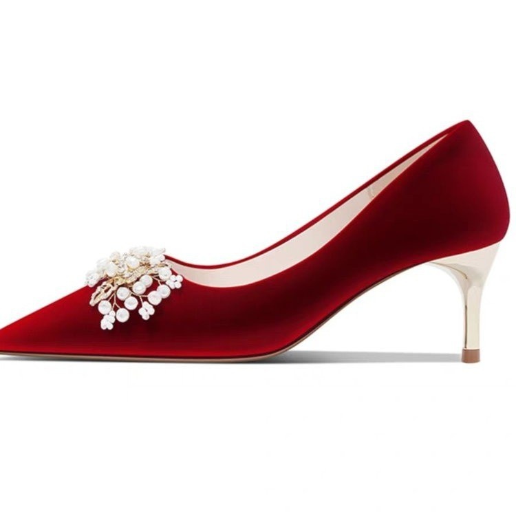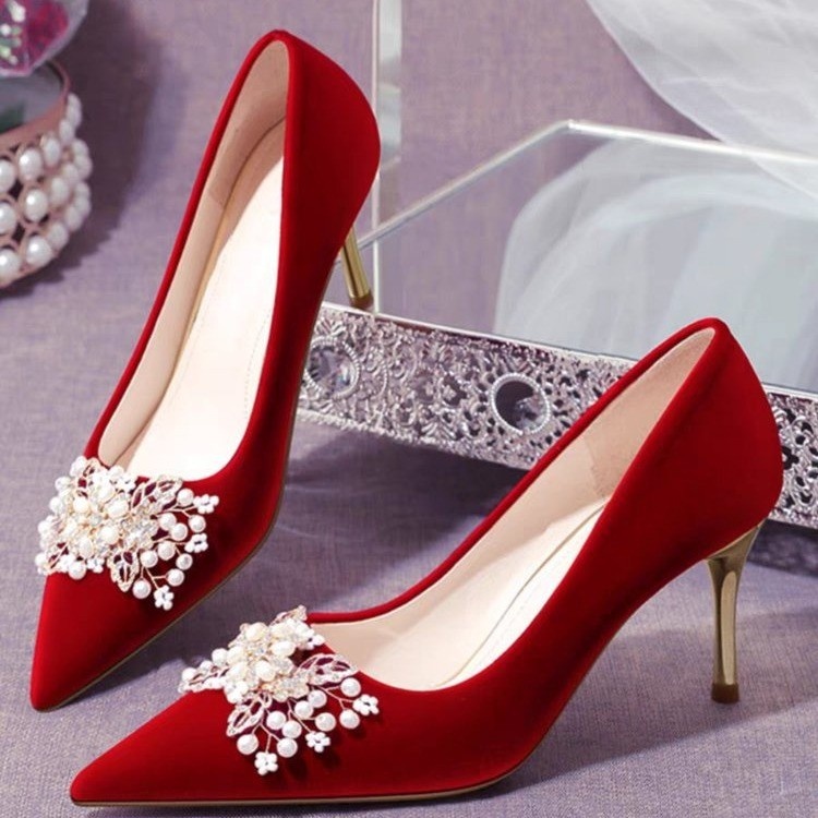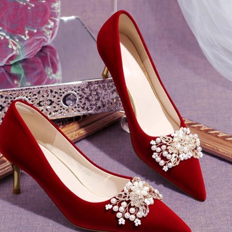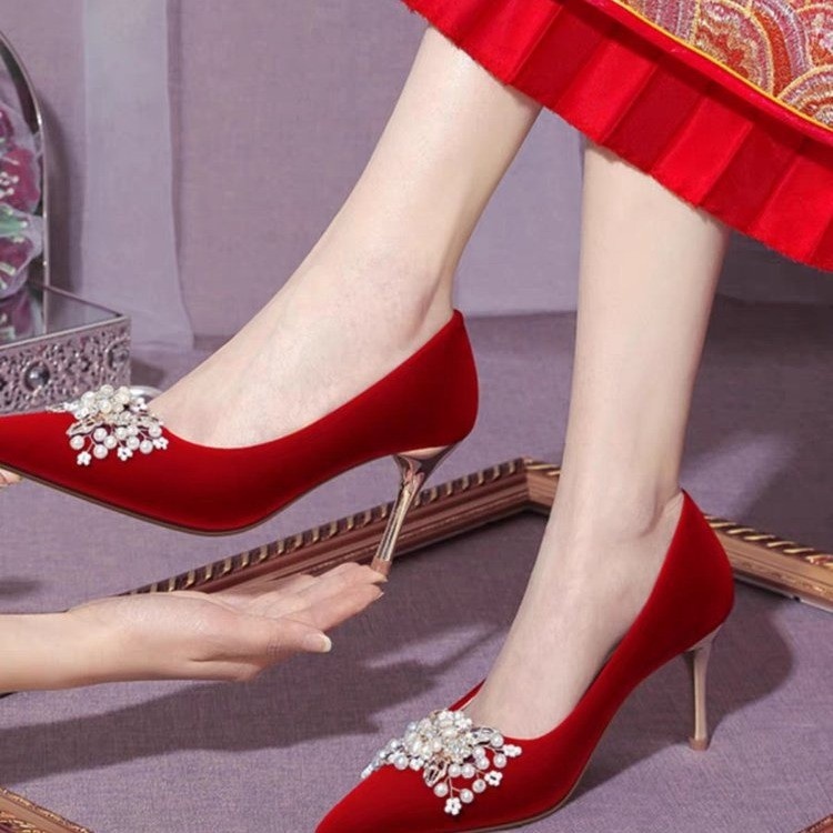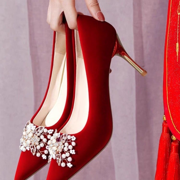 Red Wedding Shoes That Don't Tire Your Feet,Wedding Shoes For Women,Xiuhe Wedding Dresses,Two-way Wear,Season High Heels,French Style Single Shoes