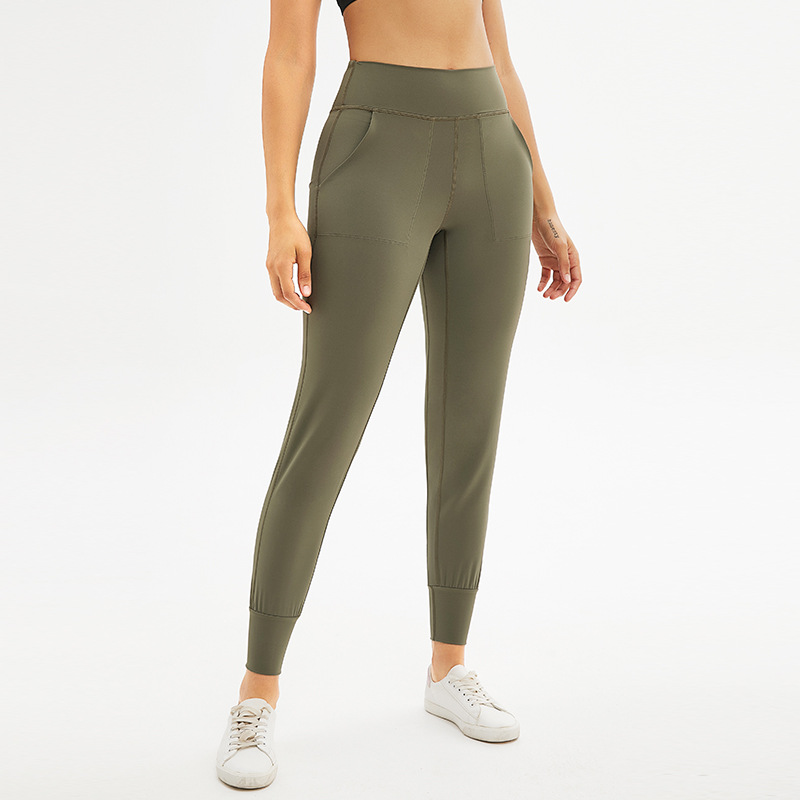 Solid Color Yoga Nine-point Pants With Outer Pockets Nude Loose Trousers Sports Casual Fitness Pants For Women