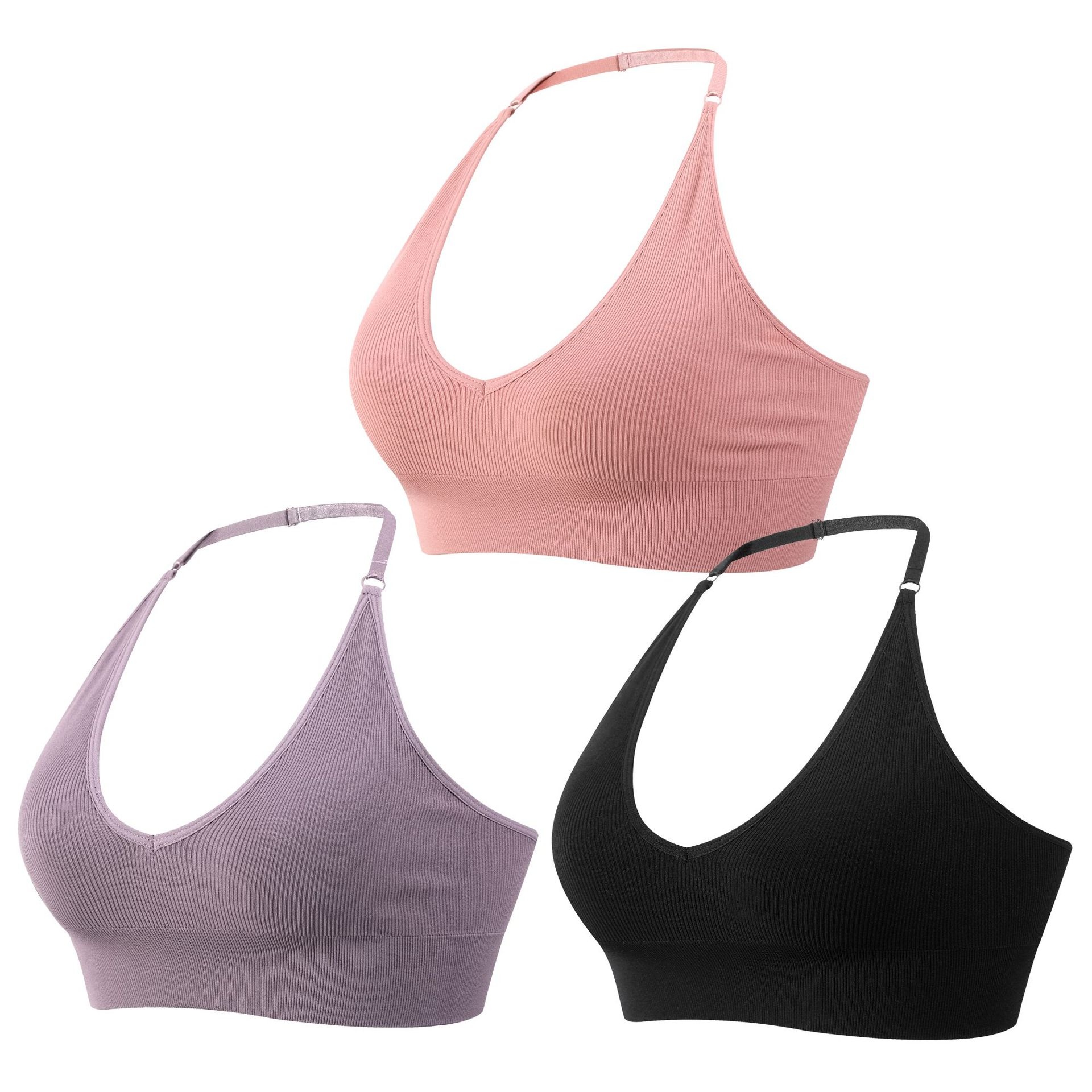 European And American Large Size Underwear Triangle Cup Halter Neck Style Adjustable Shoulder Straps Gathered Deep VLarge Backless Threaded Beautiful Back Bra