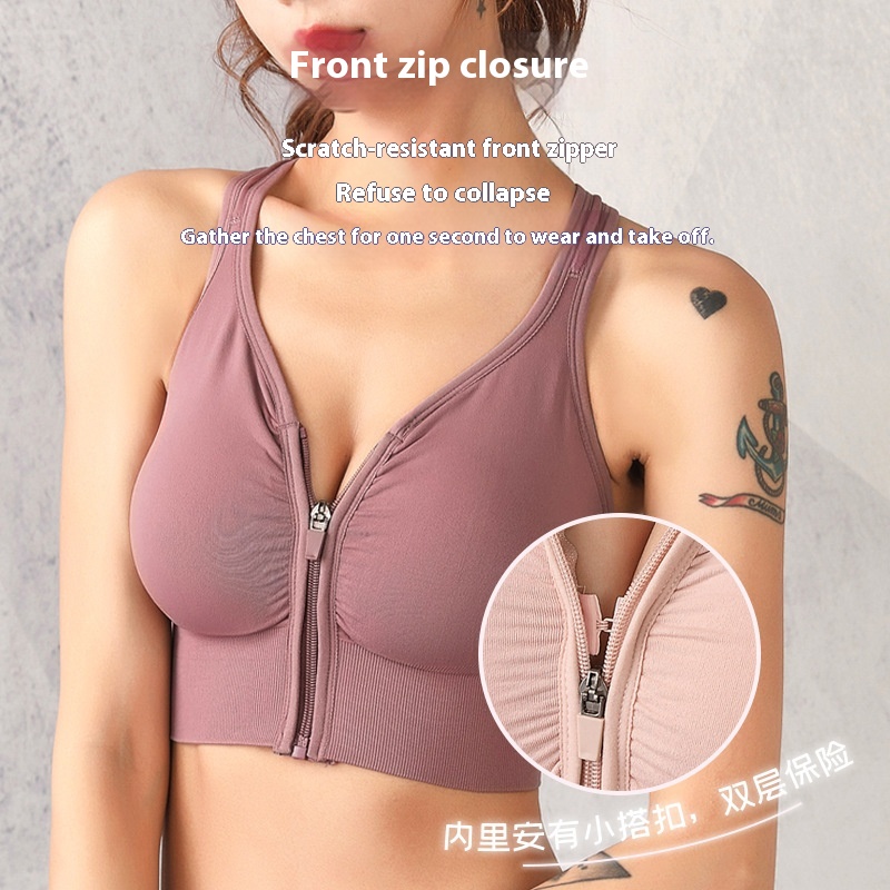 Front Zipper Sports Bra Shockproof Running Gathered Anti-sagging Beautiful Back Bra Bra With Removable Chest Pad Fitness