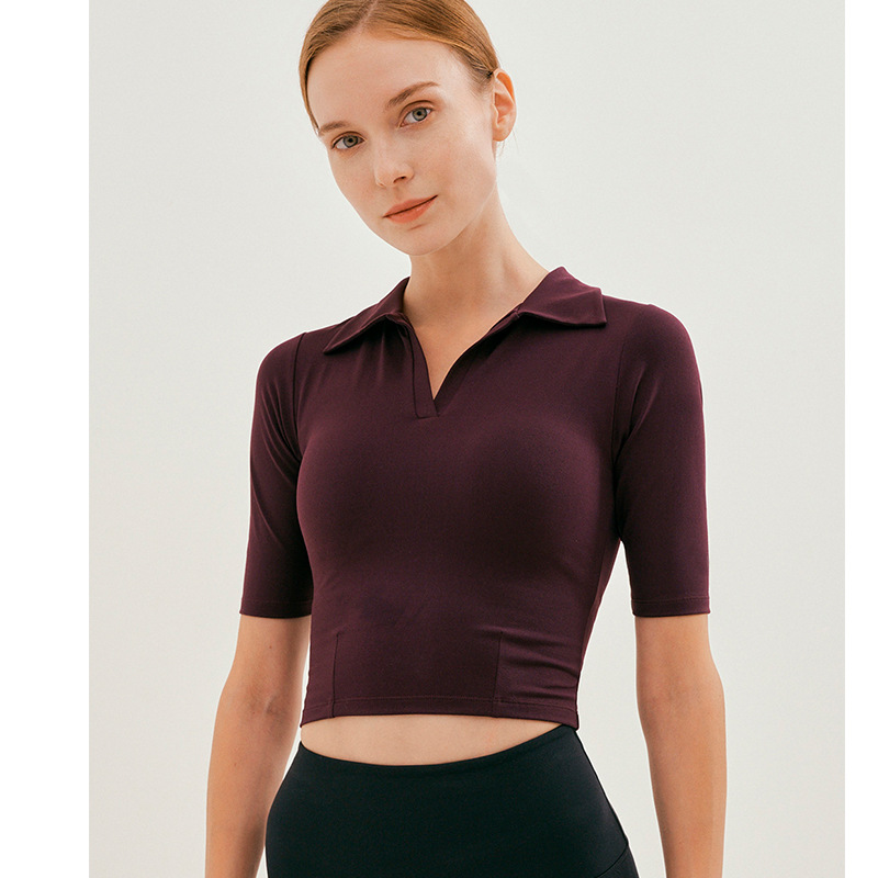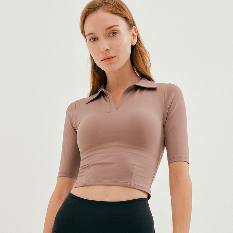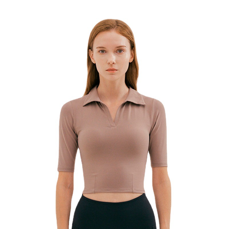 Summer Yoga Clothes Women's Tops Short Slim Polo Shirt Lapel Fitness Tops Sports T-shirt Women's Short Sleeves