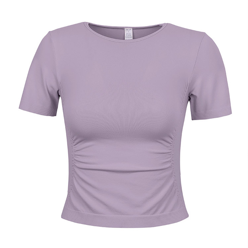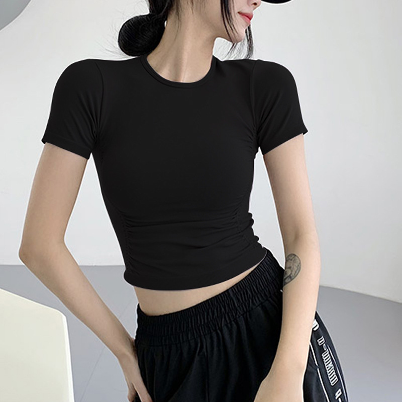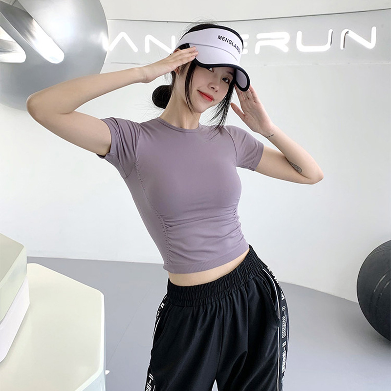 Spring And Summer Pleated Tops For Sports Yoga Short Sleeves,Moisture Wicking,Slimming And Meat-covering Net Red Hot Girl Tops