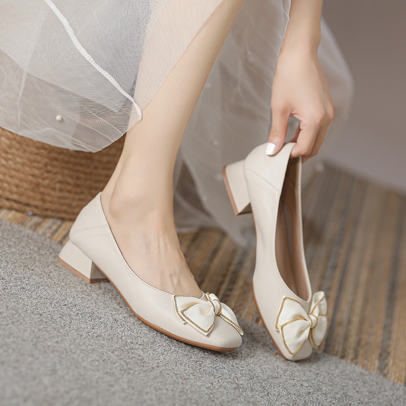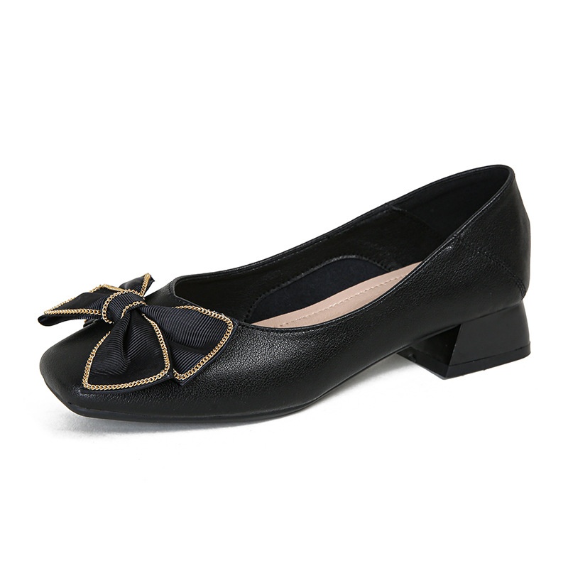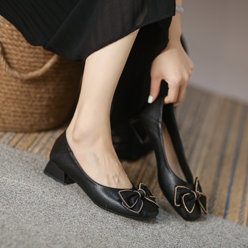 Evening Style Ladies Single Shoes Women's Shoes Hot Style Retro Commuting Soft Leather Square Head Medium And High Heel Grandma Shoes