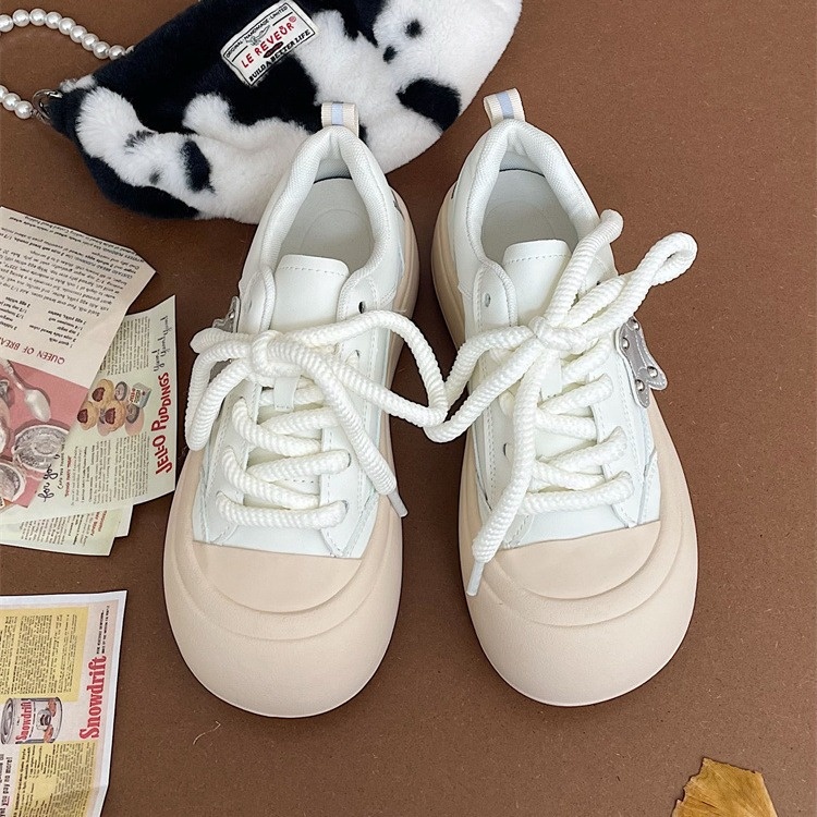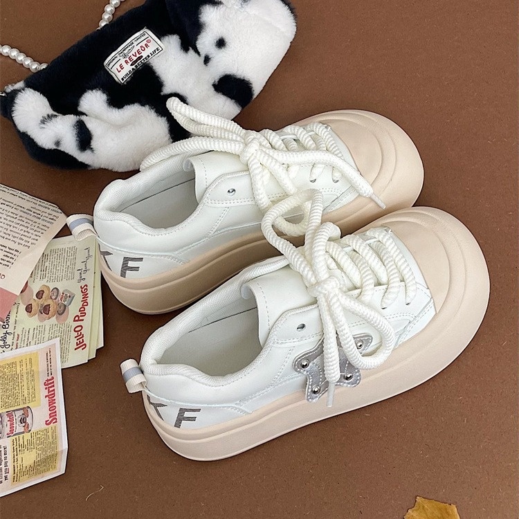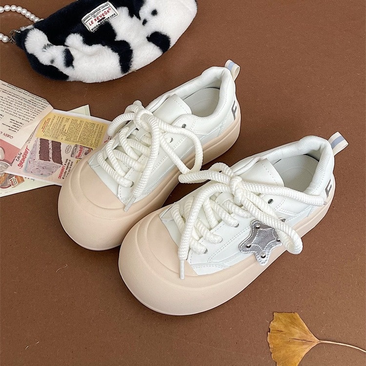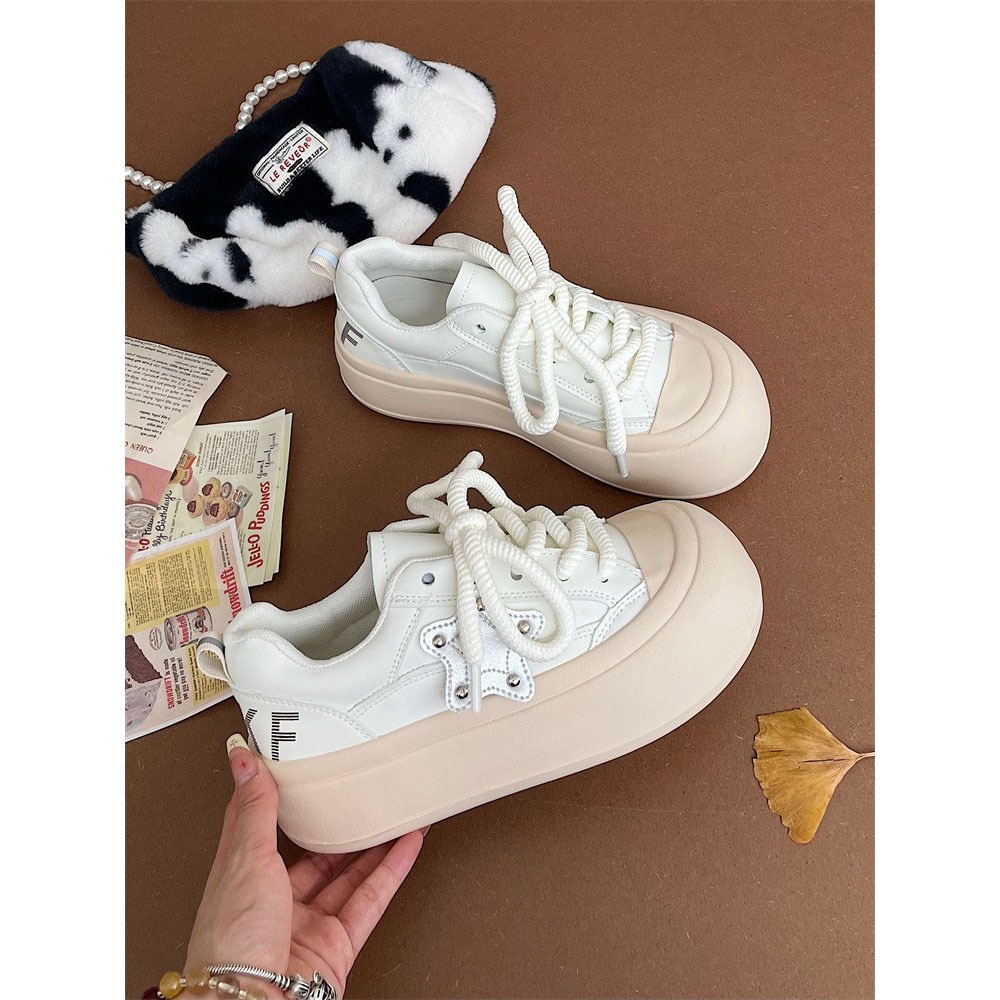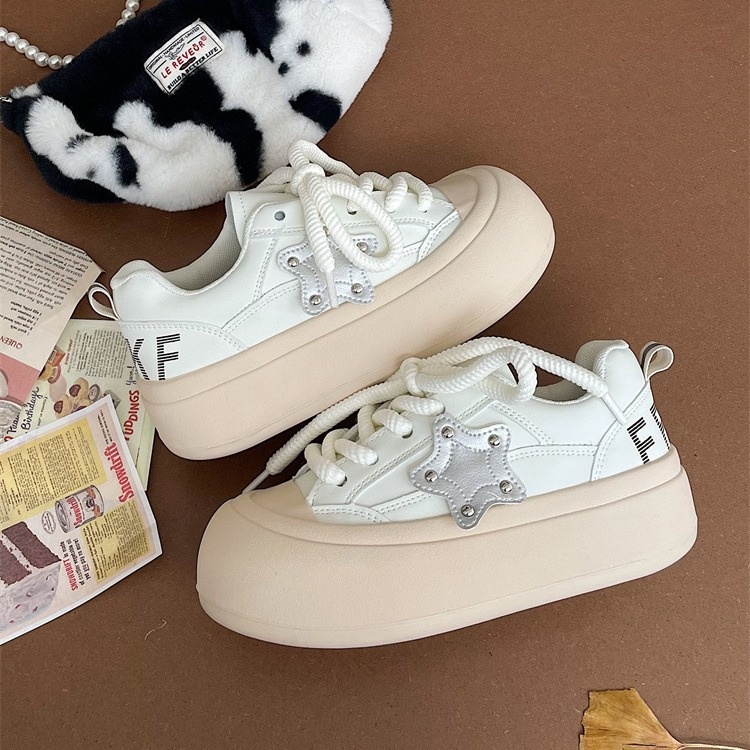 Big Head Ugly Cute Shoes For Women Summer All-match Round Head White Shoes For Women Fat Silver Star Shoes Sneakers For Women Bread Shoes