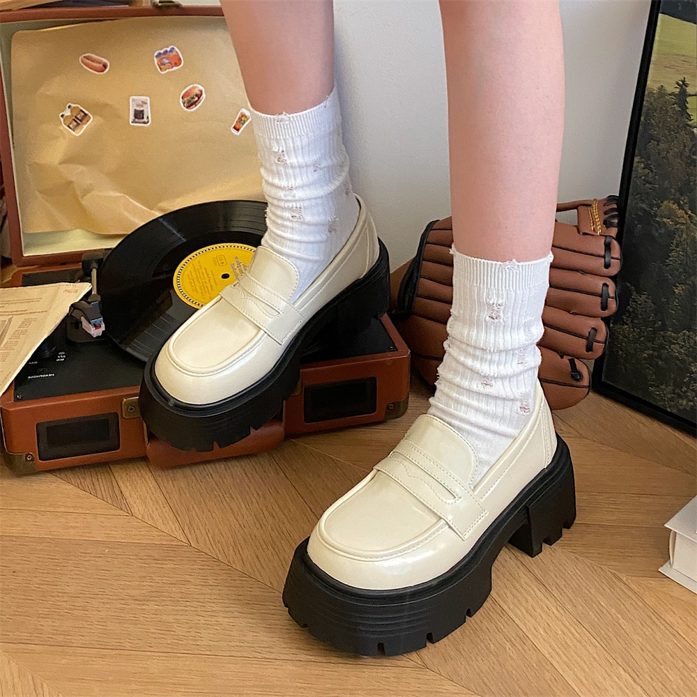 Round Toe Slip-on Thick-soled Small Leather Shoes For Women Spring And Autumn All-match Forest Style Retro Black Loafers
