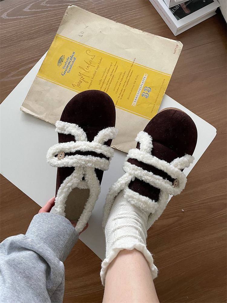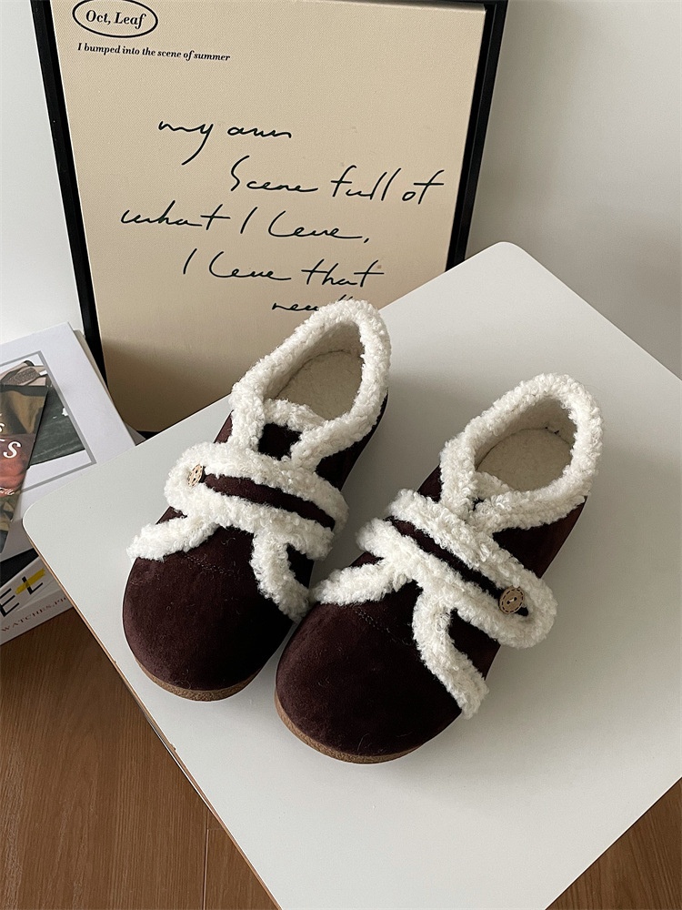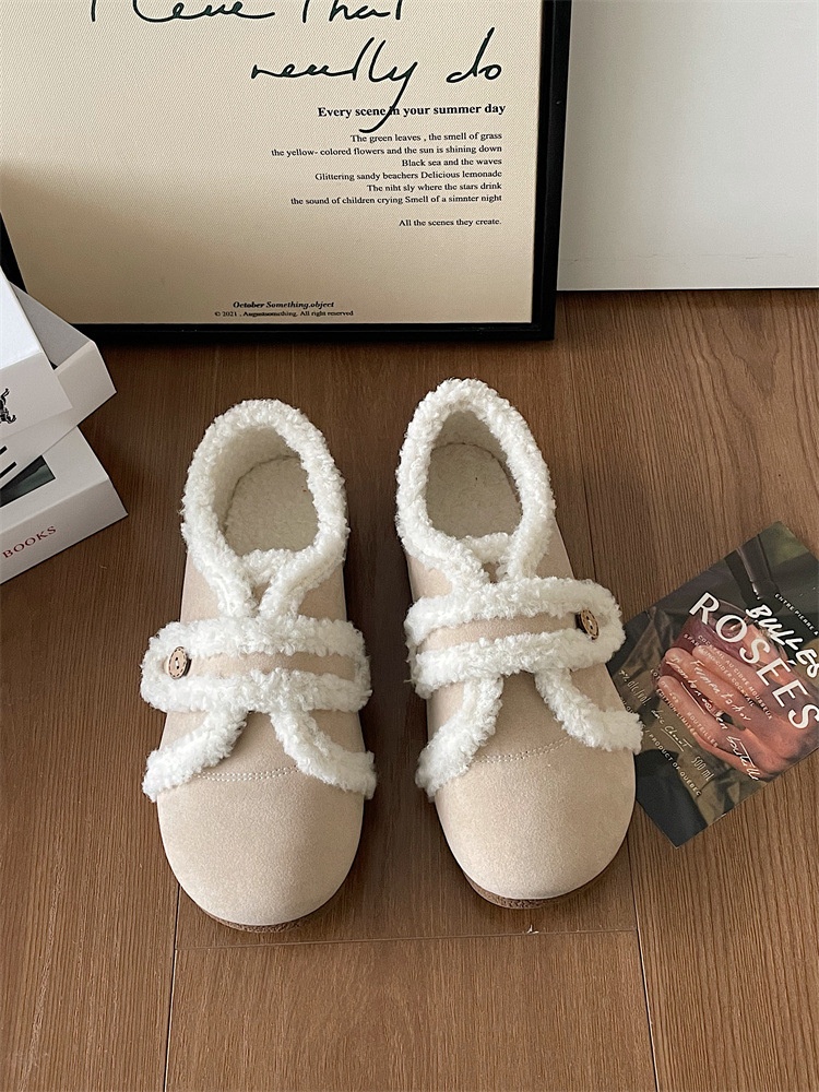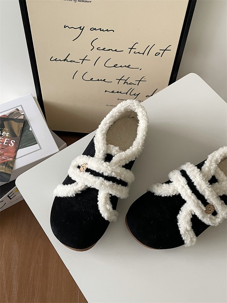 French Fur Shoes For Women Winter Outdoor Wear Velvet Versatile Flat Toe Shoes Casual Scoop Shoes Fur Single Shoes
