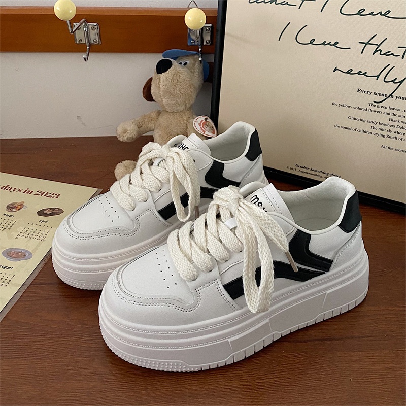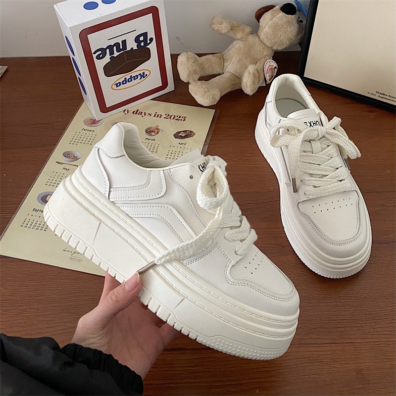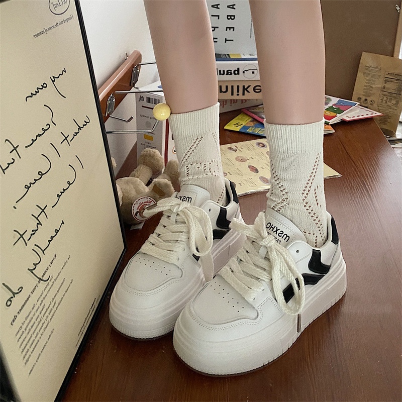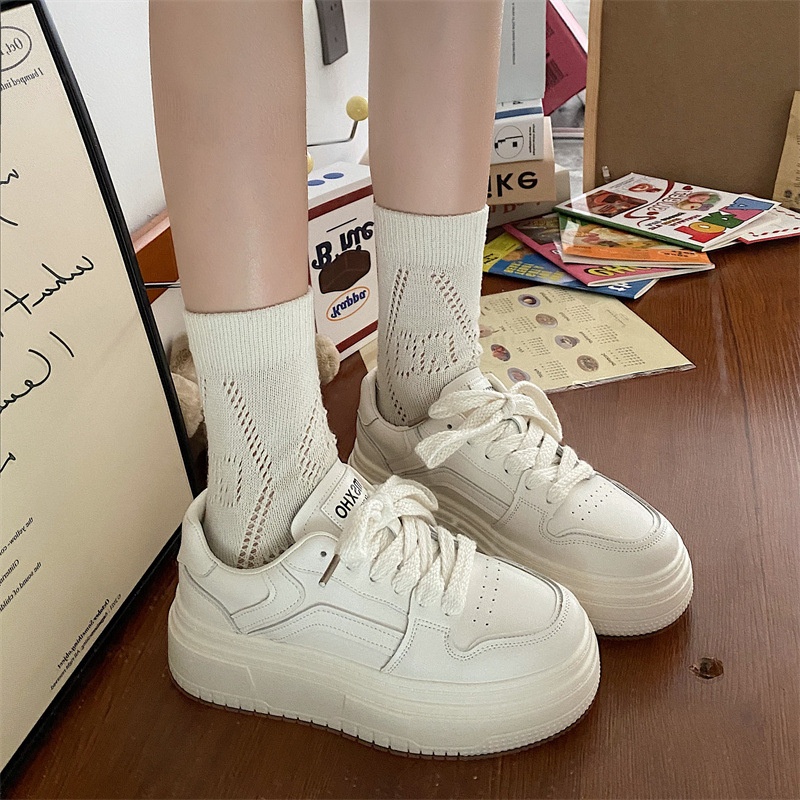 Shoes For Women Spring And Autumn Style All-match Chic Hong Kong Style High-end White Shoes Thick-soled Popular Sports Shoes