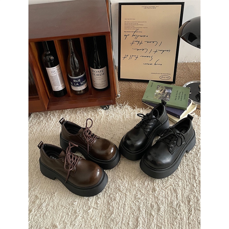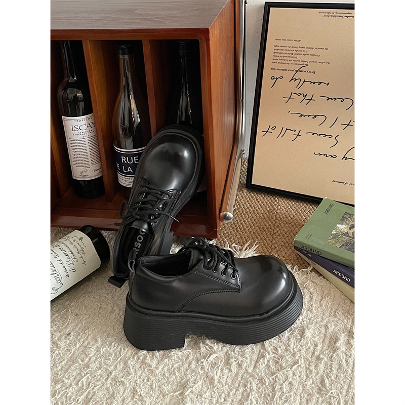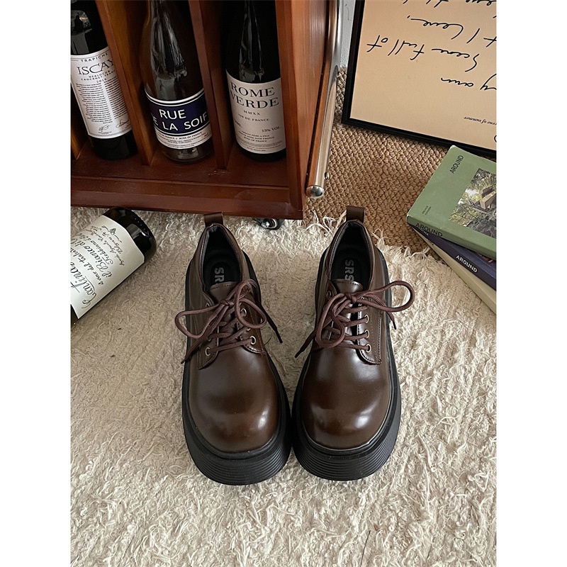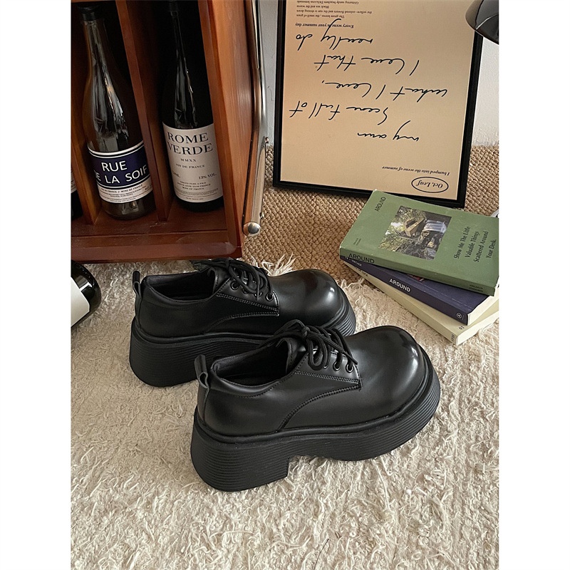 Round Head Retro British Style Black Thick-soled Leather Shoes For Women Autumn And Winter French Thick Heels With Skirts Single Shoes