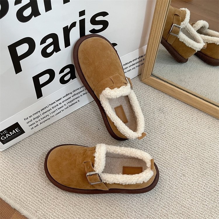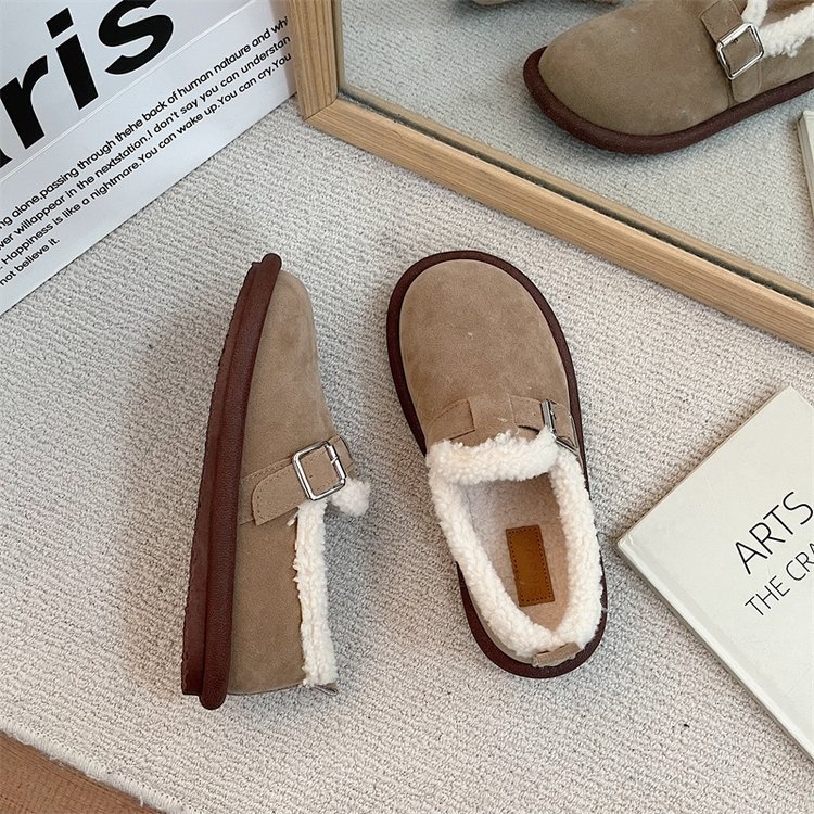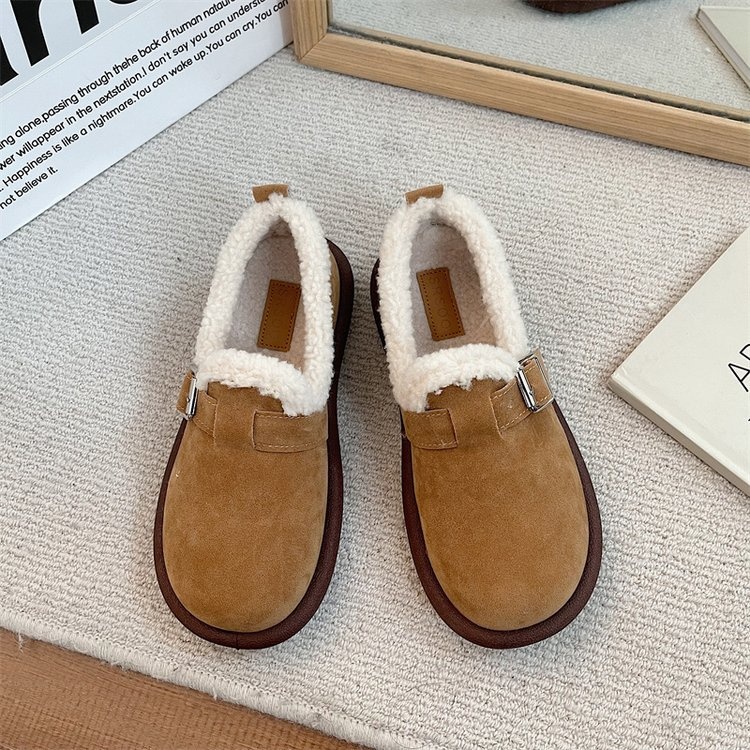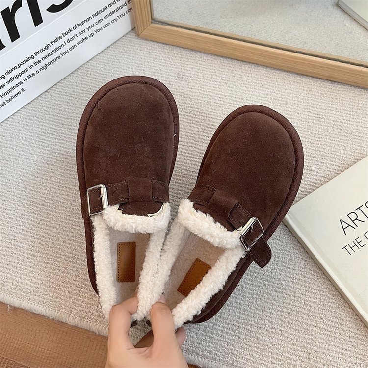 Birkenstocks Plus Velvet Women's Flat High-top Toe Shoes Round-toed Niche Cotton Shoes One-step Thick-soled Fur Shoes Autumn And Winter