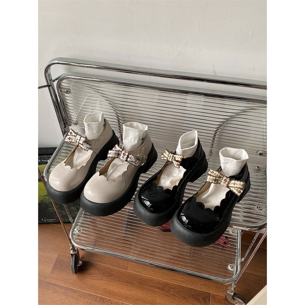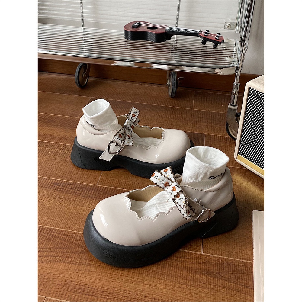 Cute Thick-soled Japanese JKSmall Leather Shoes For Women Summer Bow College Style Lolita Uniform Shoes