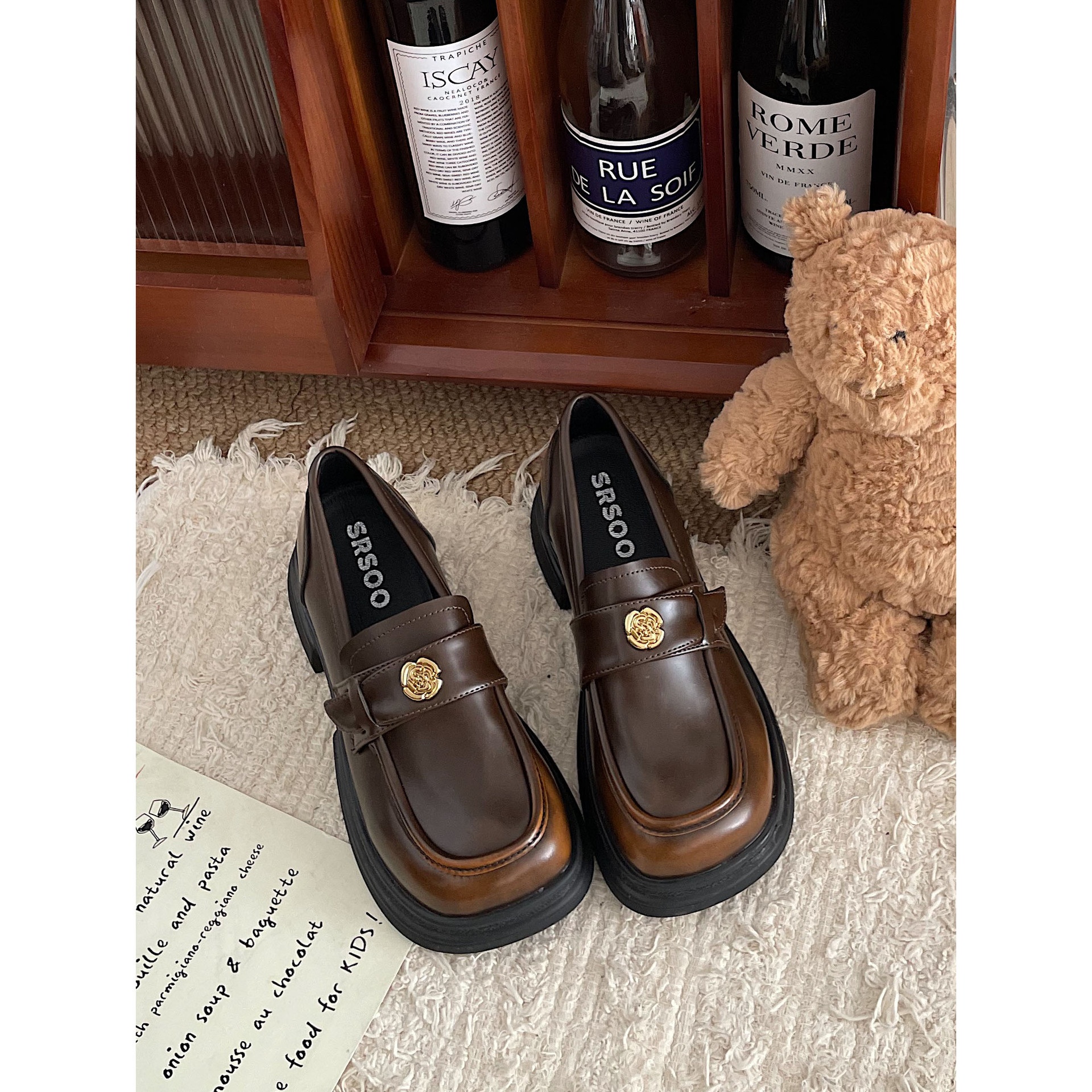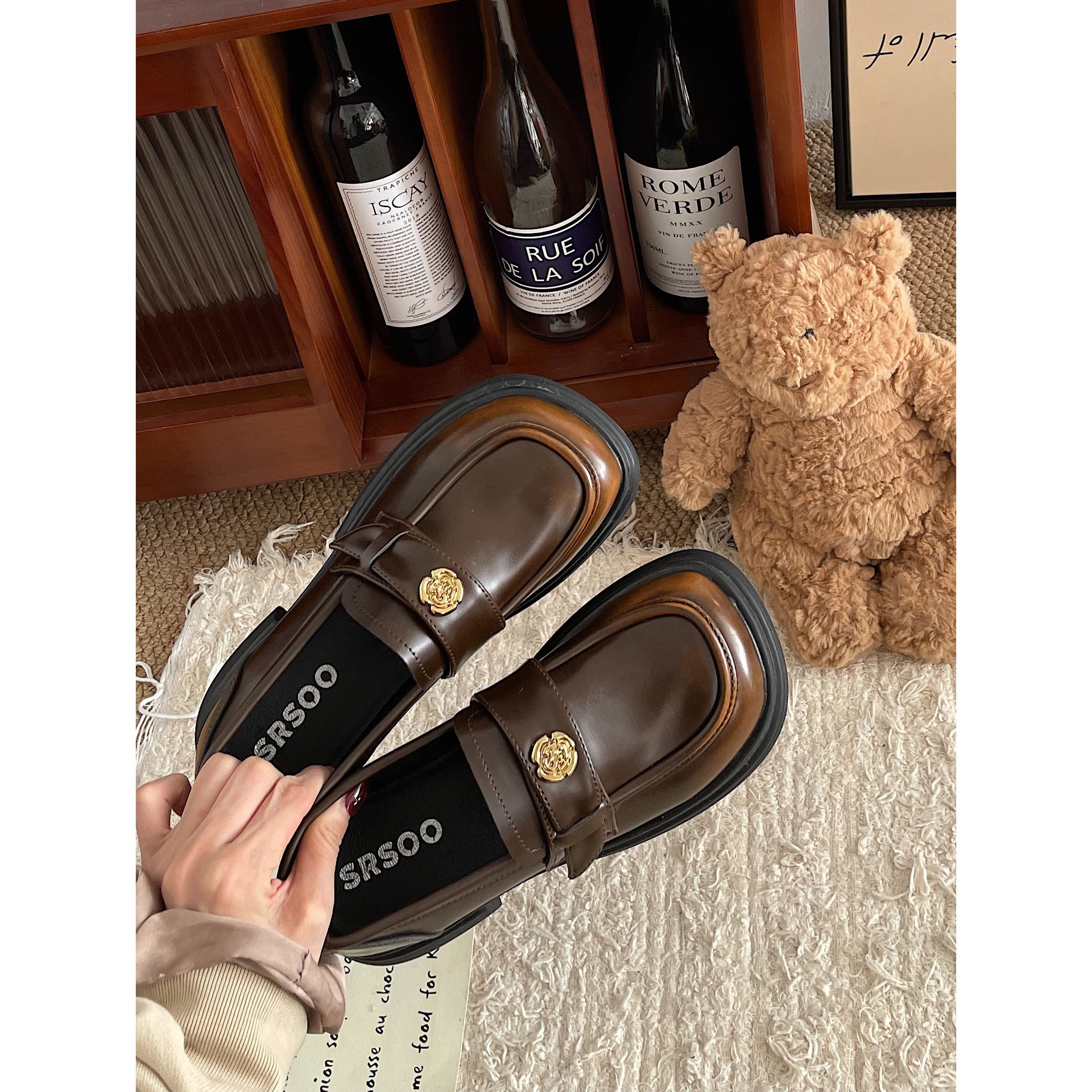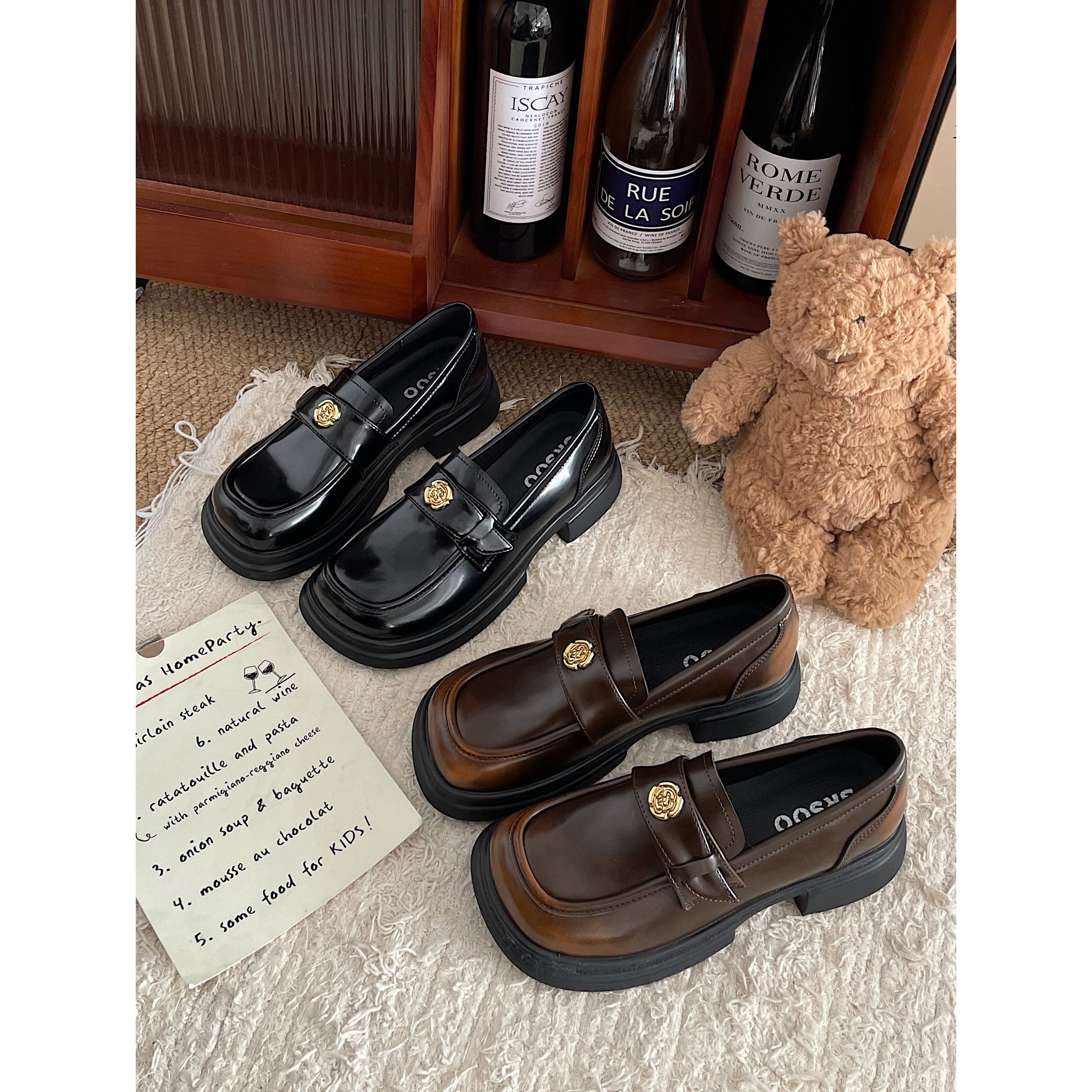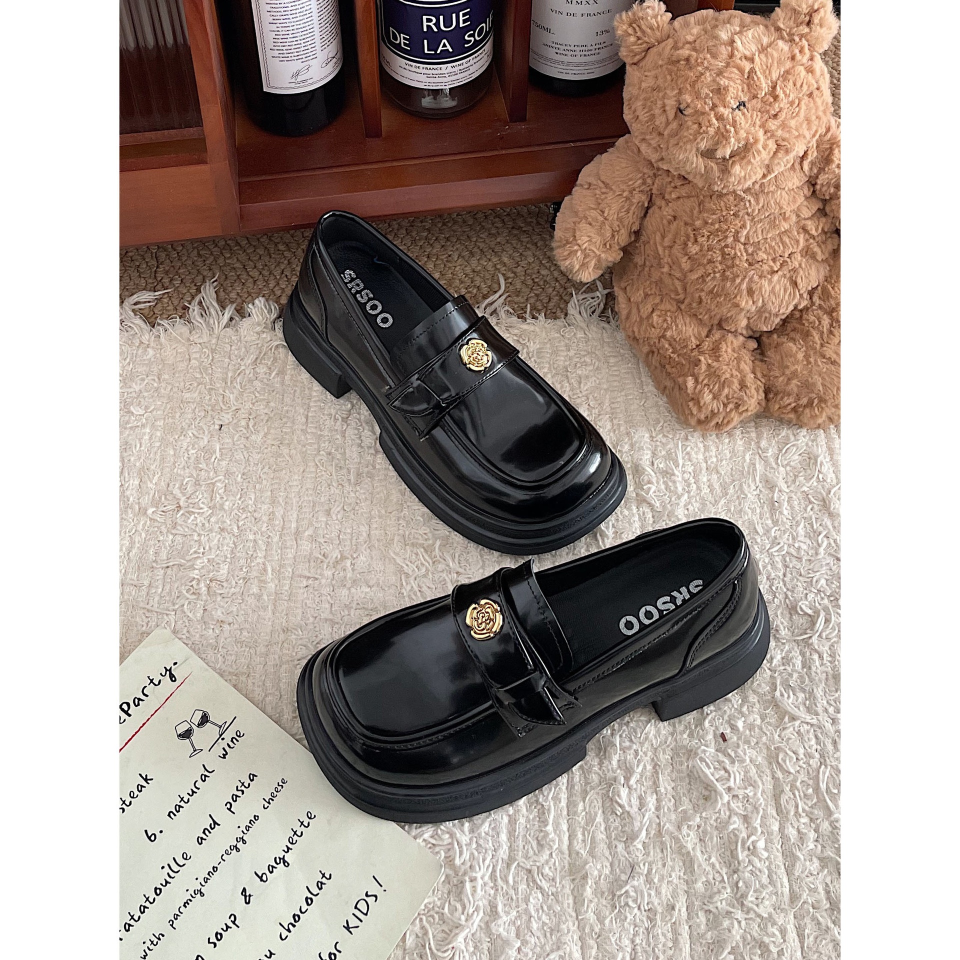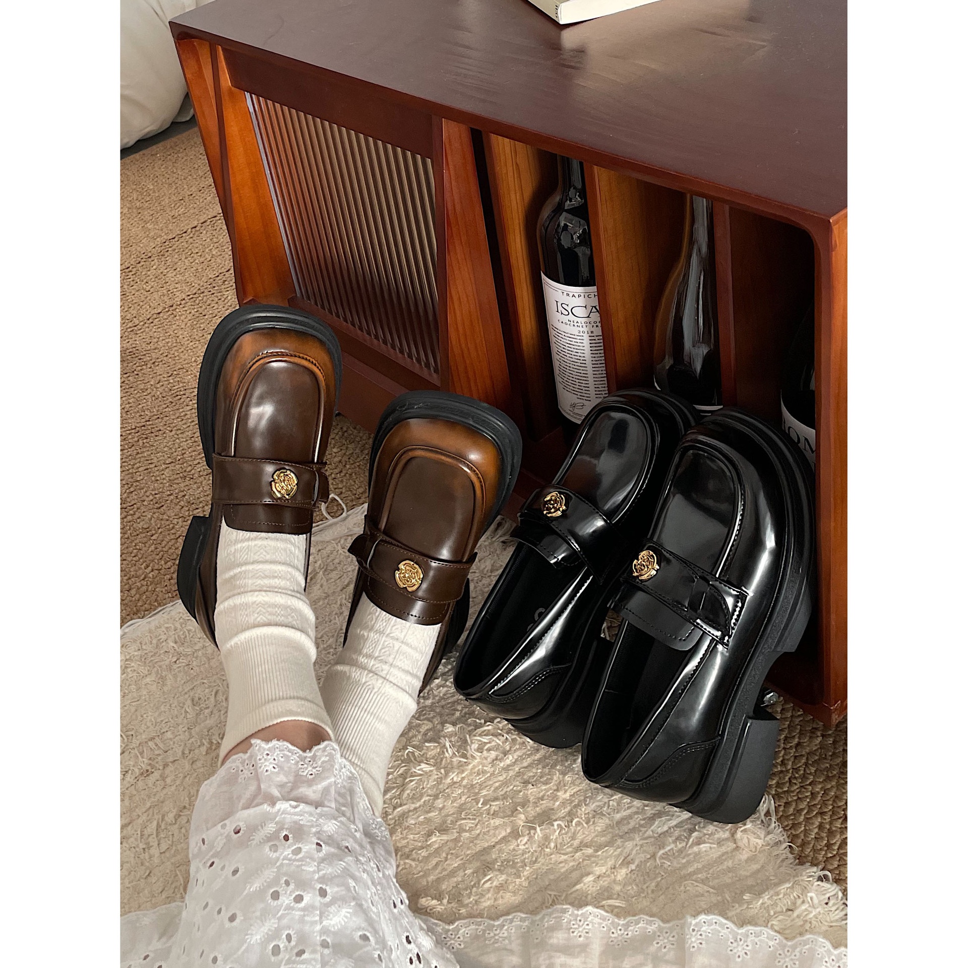 Jinmi Thick-soled Loafers For Women Retro Gold Coin Leather Shoes For Women British Style Chanel Style Single Shoes