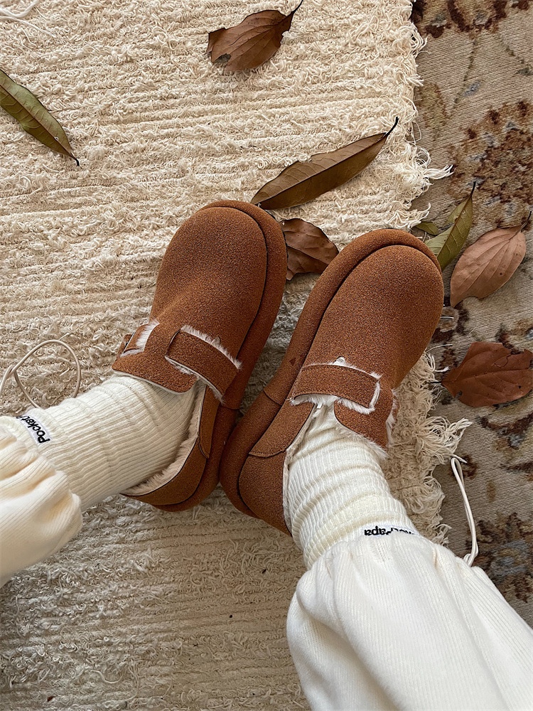 Jinmi Birken Shoes Women's Plush Toad Shoes Autumn And Winter Women's Shoes Flat Shoes Fur Shoes Cotton Shoes Women