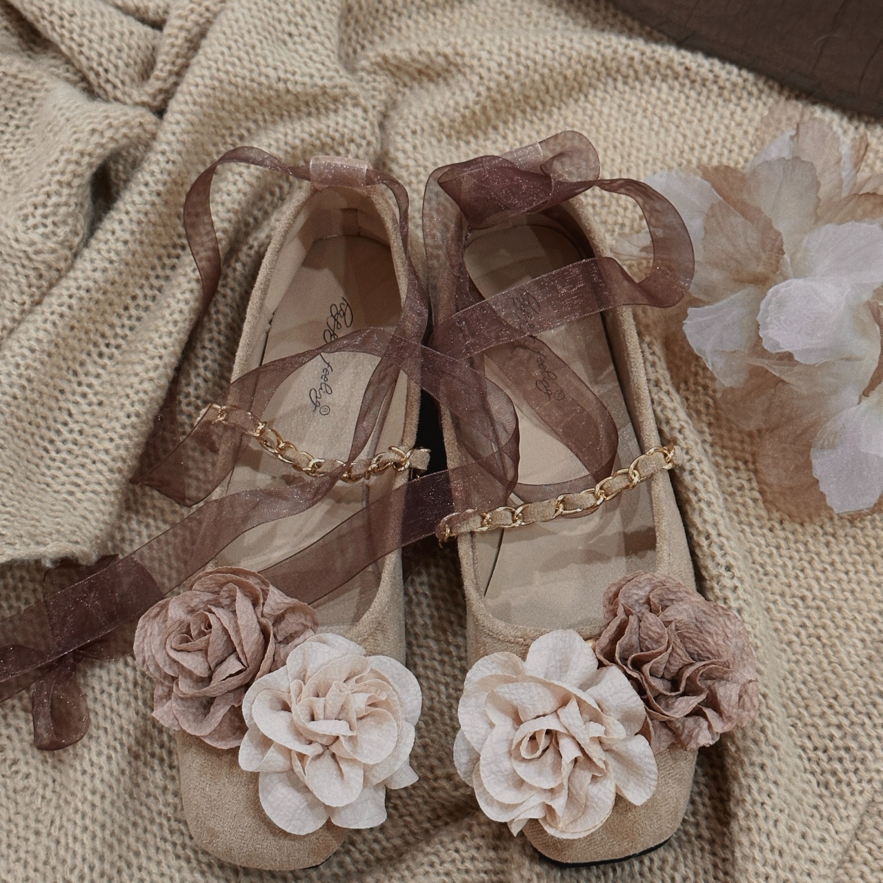 French Round Toe Retro Camellia Flat Mary Jane Shoes For Women Spring Single Strap Shallow Mouth Single Shoes