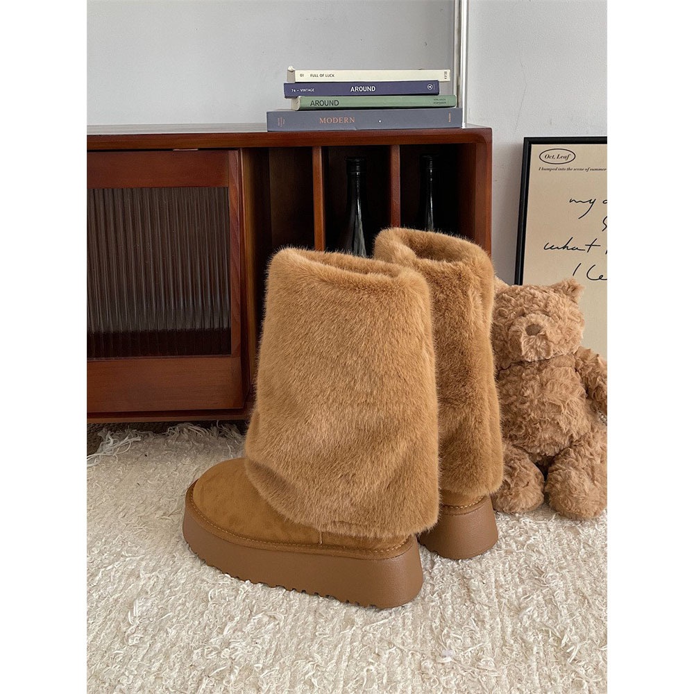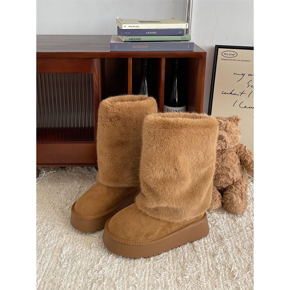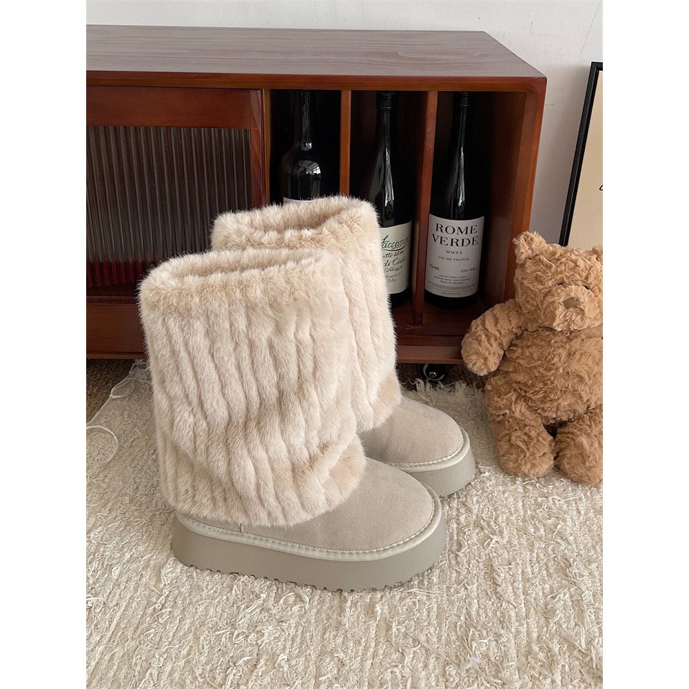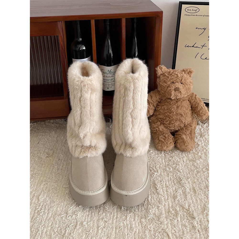 White Internet Celebrity High-top Thick-soled Snow Boots For Women Winter Non-slip Plus Velvet Thick Warm Cotton Shoes