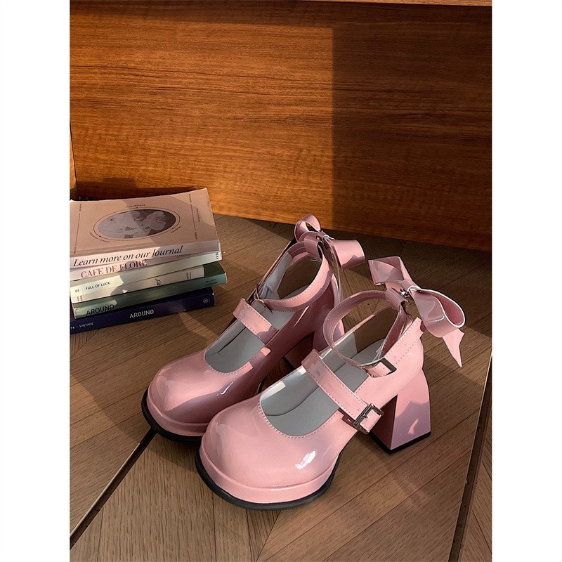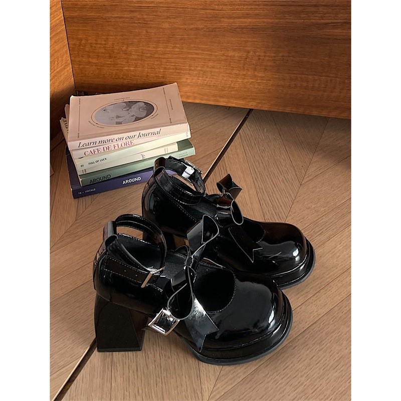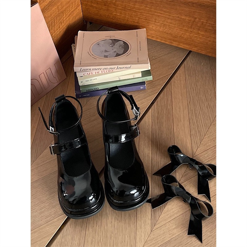 Round Head Internet Celebrity Small Size Thick Heel Black High Heels Women Autumn And Winter French Retro Mary Jane Shoes