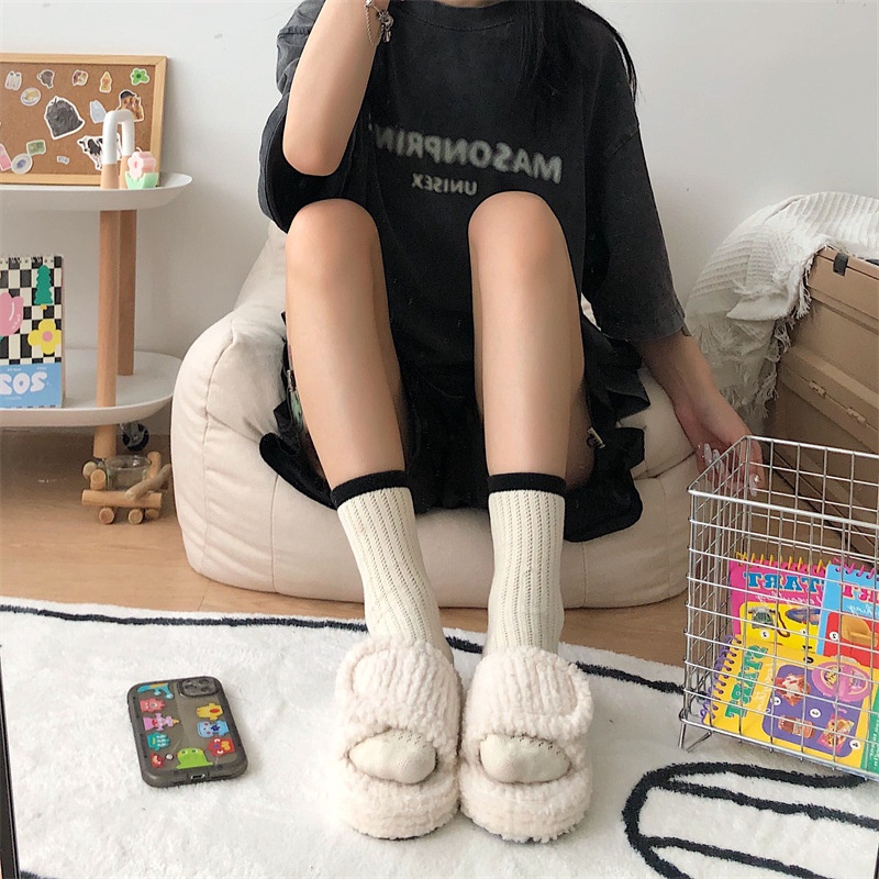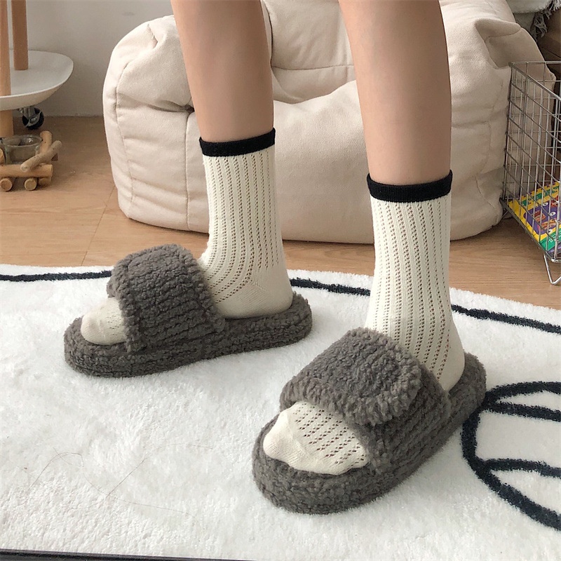 Furry Slippers For Women To Wear Outside In Autumn And Winter Korean Version Thick Warm Flat Bottom Women's Slippers Internet Celebrity Home