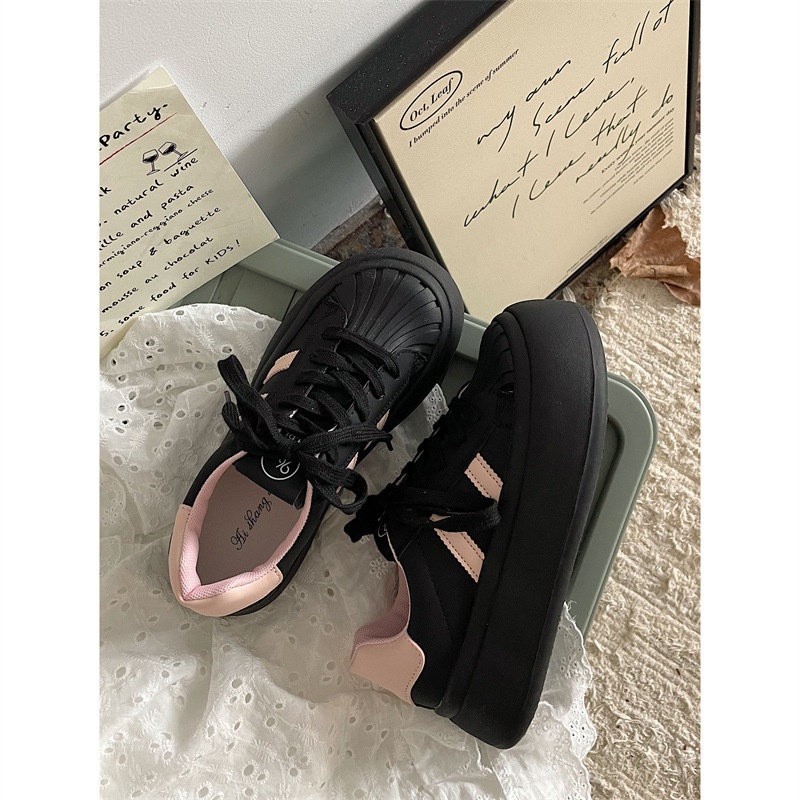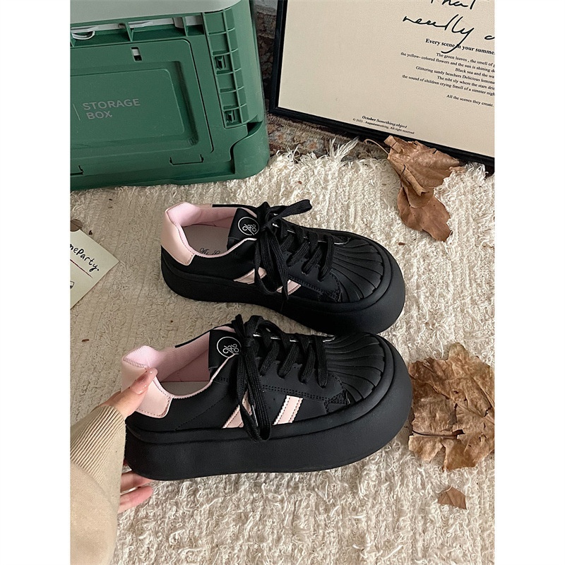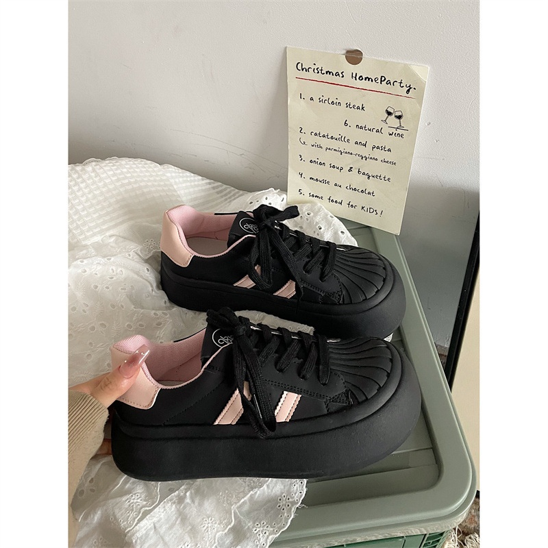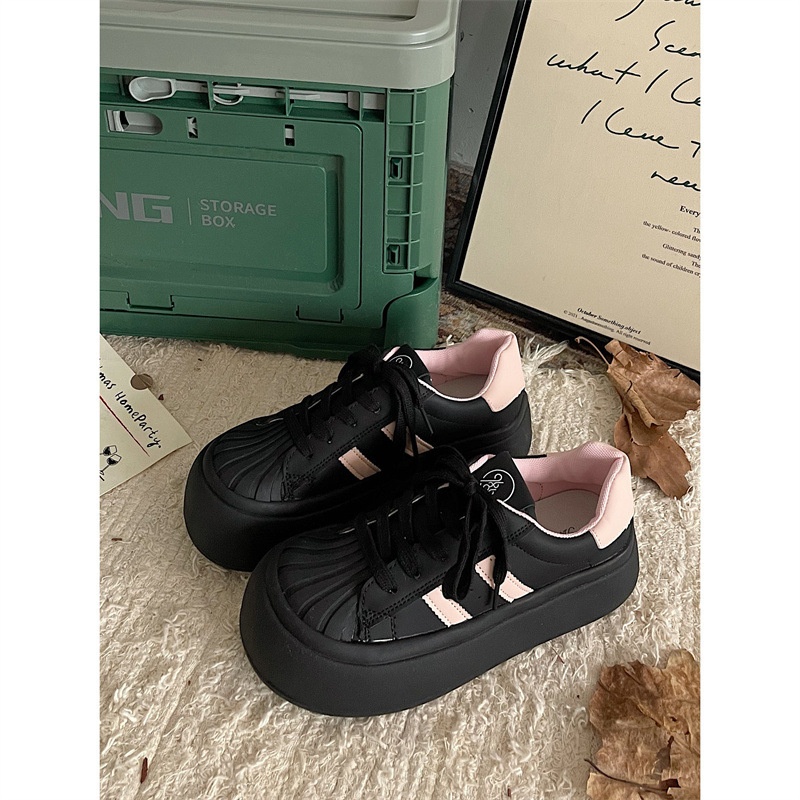 Jinmi Classic Shell Toe Pink Thick-soled Sports Casual Sneakers For Women Big Head Ugly Cute Little White Shoes