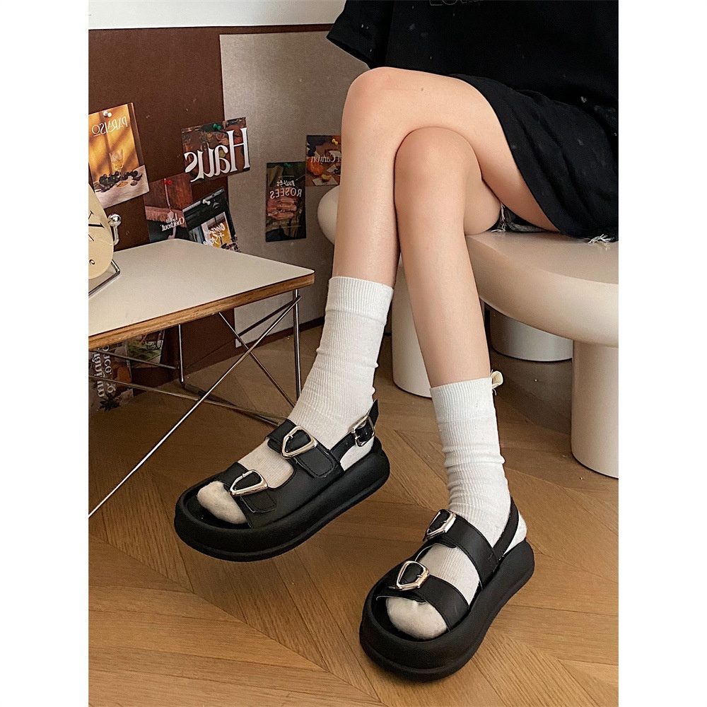 One-strap Roman Sandals For Women Summer Open-toe Fashionable Versatile Velcro Thick Bottom Non-slip Casual