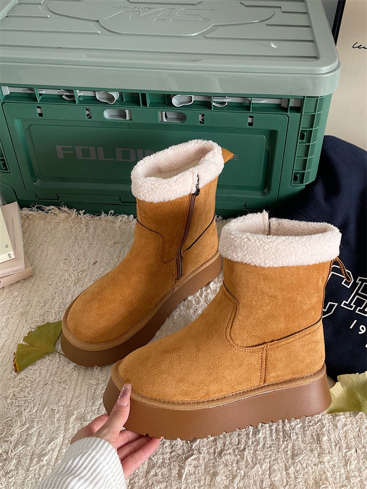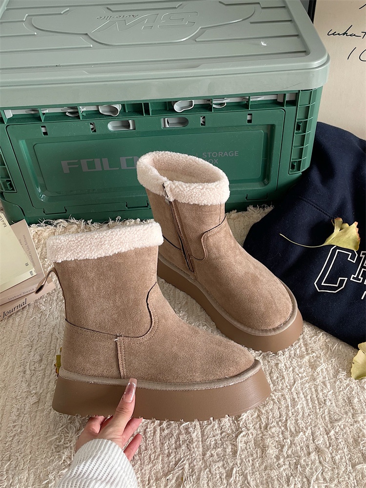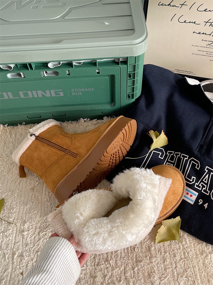 Versatile Warm Thick-soled Snow Boots For Women Winter Forest Retro Plus Velvet Thickened Cotton Shoes Fur Short Boots