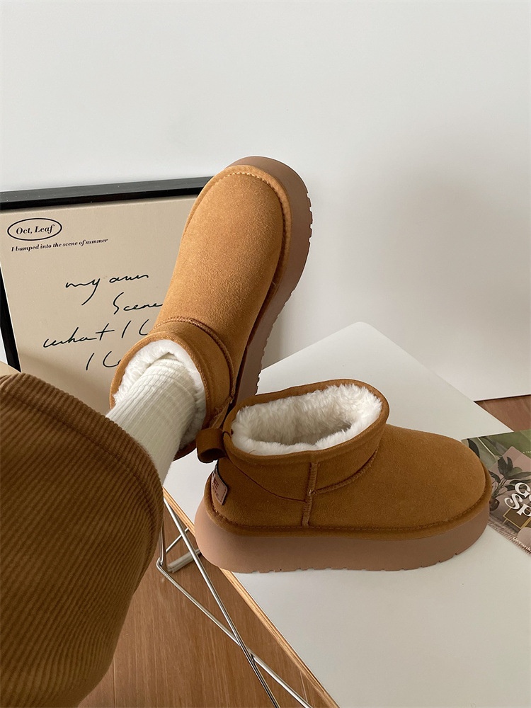 Snow Boots Women Autumn And Winter All-match Round Head Retro Platform Cotton Shoes Net Celebrity Thick Bottom Short Boots