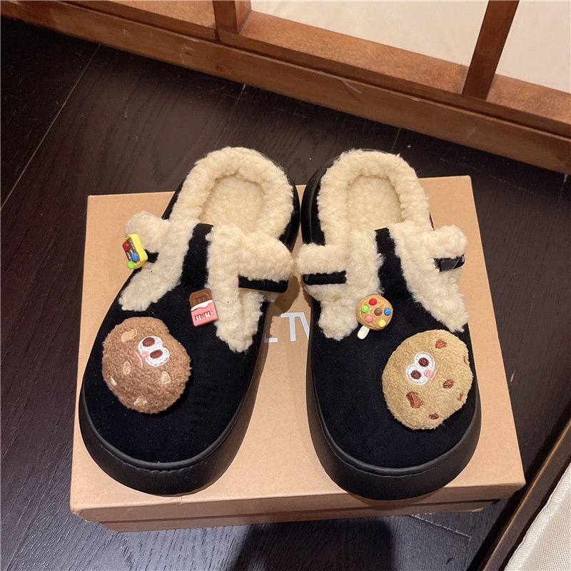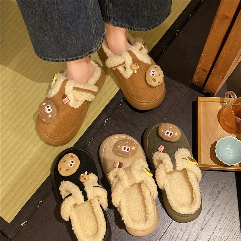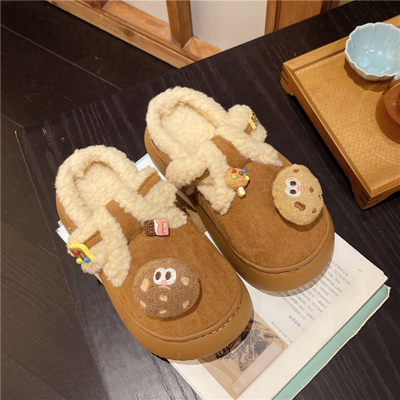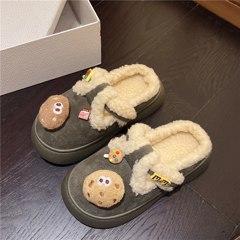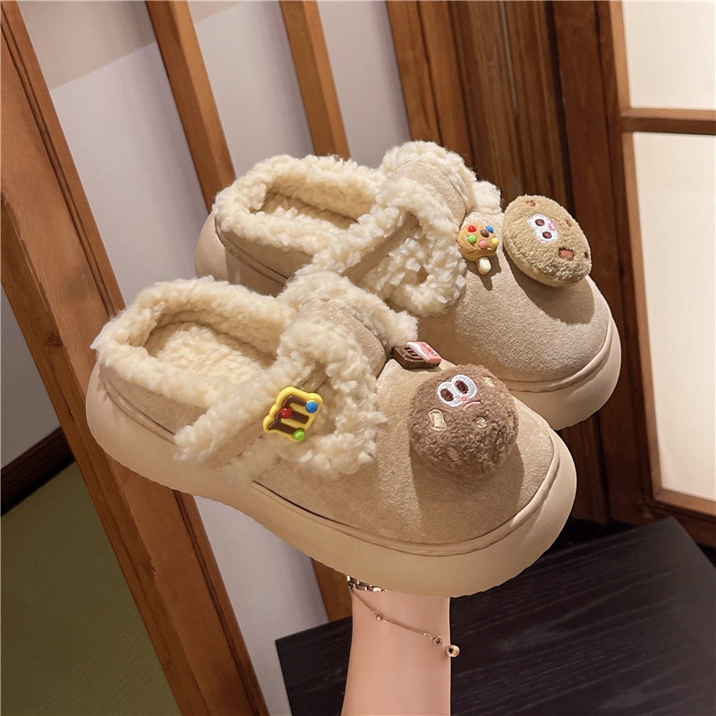 Internet Celebrity Cute Non-slip Thick-soled Fur Slippers For Women To Wear As Outerwear Autumn And Winter Plus Velvet Warm Cotton Slippers