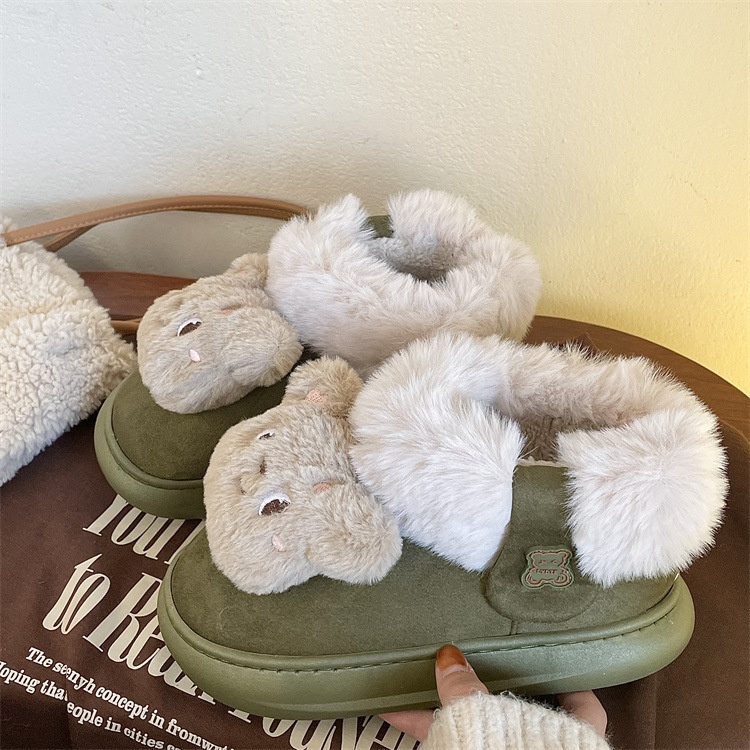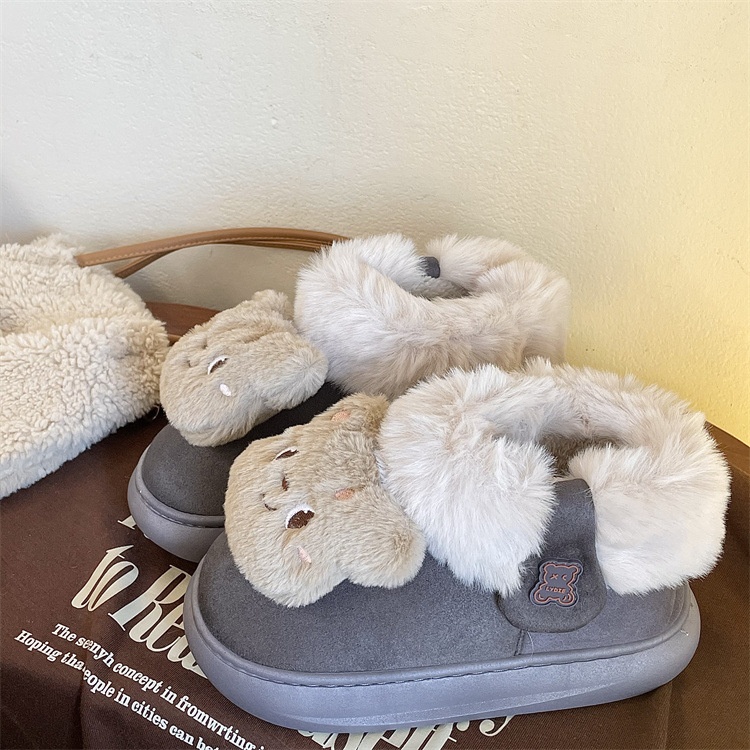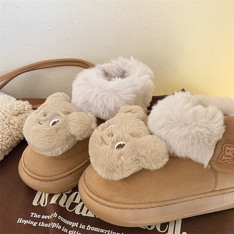 Cute Cartoon Bear Snow Boots For Women Autumn And Winter Warm Plus Velvet Thick Fur Cotton Shoes Short Tube Non-slip Cotton Boots