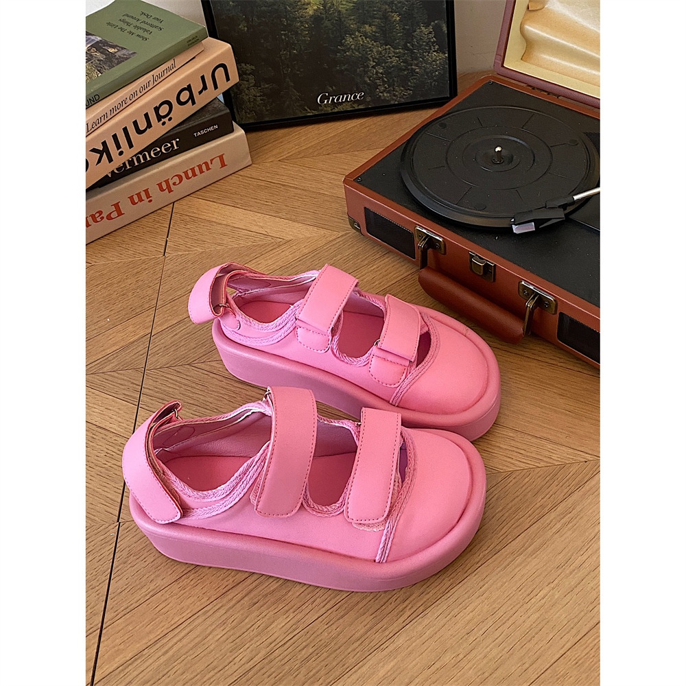 Ugly And Cute Big Head Popular Thick-soled White Baotou Sandals For Women Summer Versatile Velcro Roman Shoes