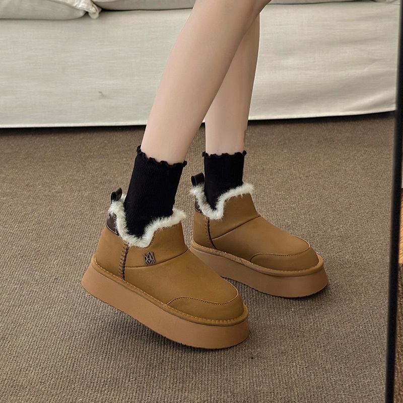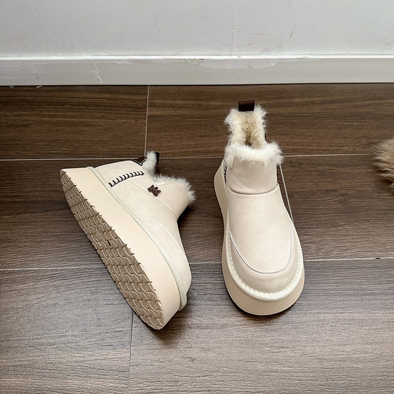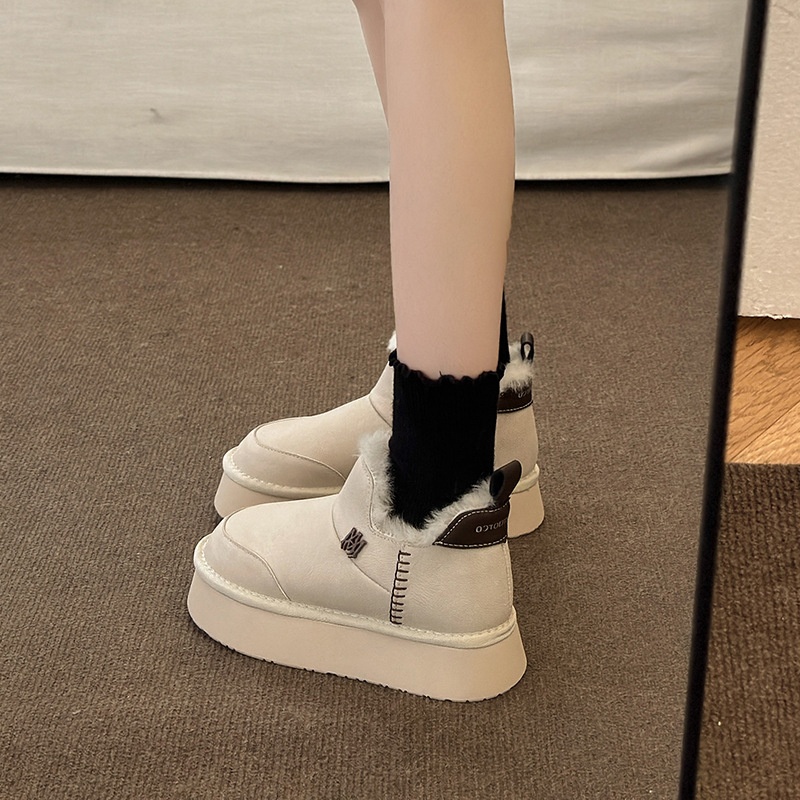 Warm And Non-slip Thick-soled Snow Boots For Women In Winter Online Celebrity Plus Velvet Thickened One-foot White Cotton Shoes