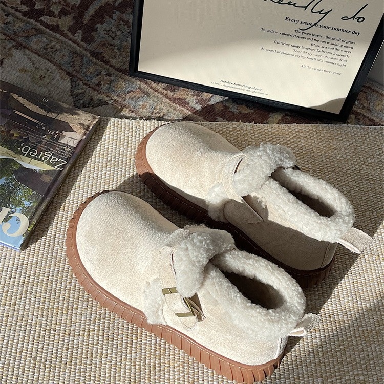 Internet Celebrity Thick-soled Fur Slippers For Women To Wear Outside Autumn And Winter Non-slip Super Popular Fashion Home Cotton Slippers