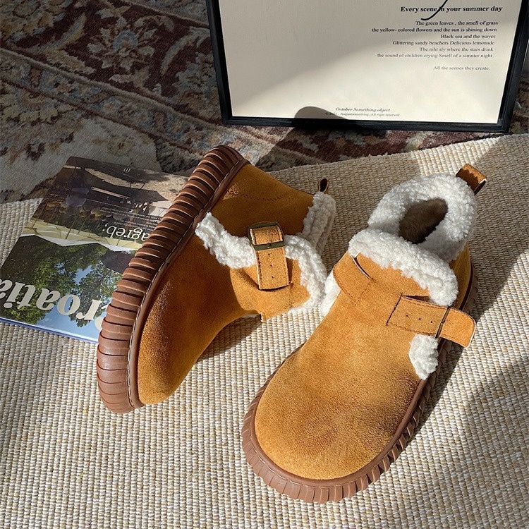 Jinmi Korean Retro Plus Velvet Warm Snow Boots Women Autumn And Winter Non-slip Short-tube Cotton Shoes Northeast Cotton Boots